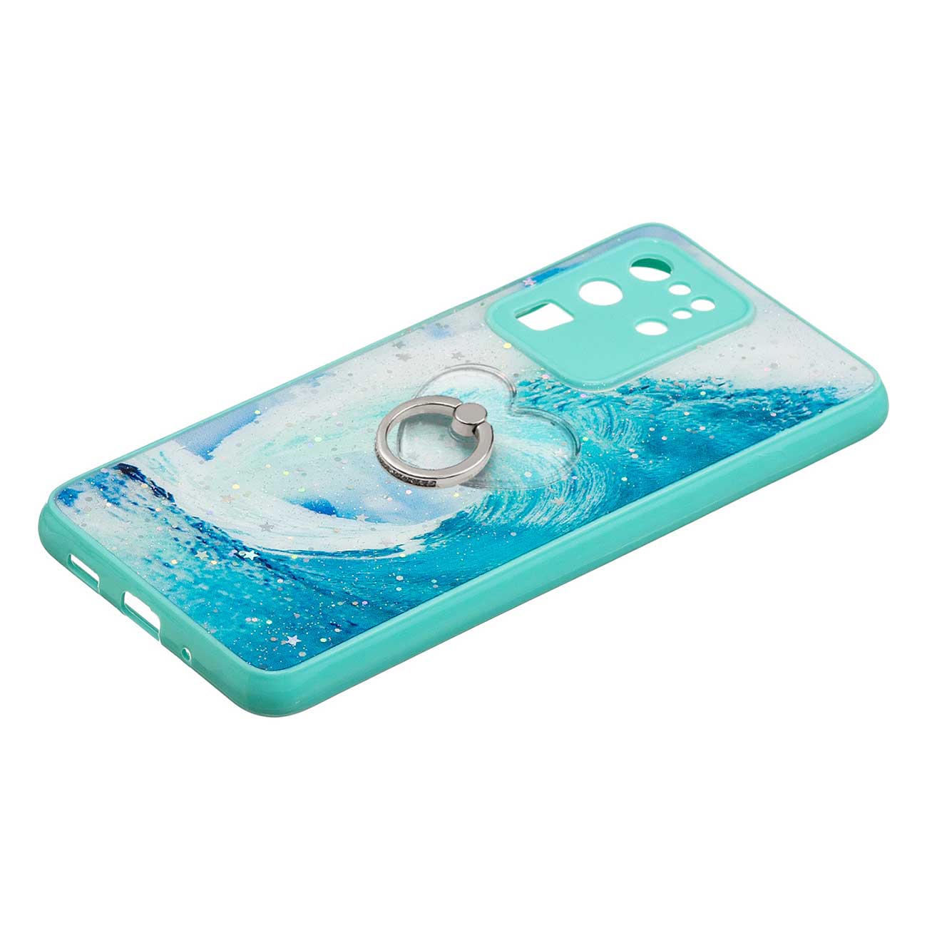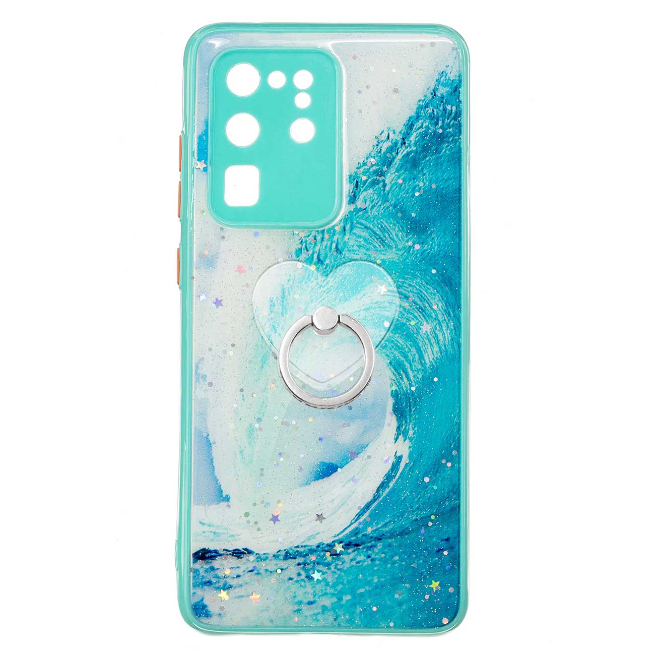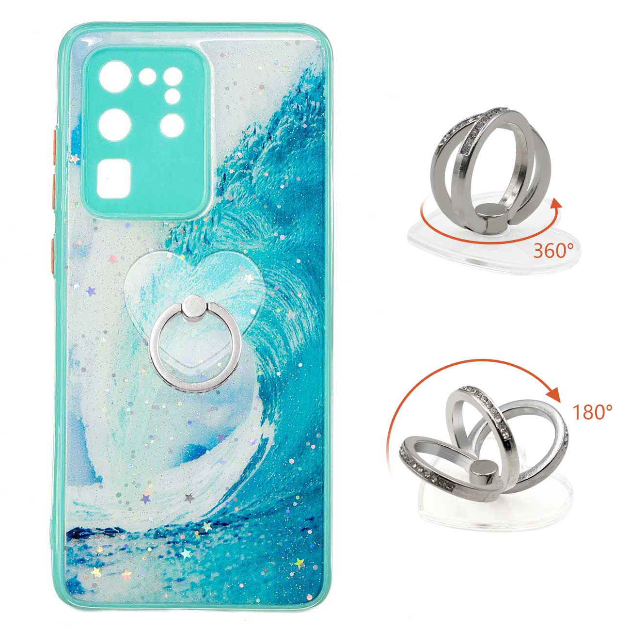 Ring Kickstand Rugged TPU + PC Cover Epoxy Pattern Printing Precise Cutout Case for Samsung Galaxy S20 Ultra - Waves