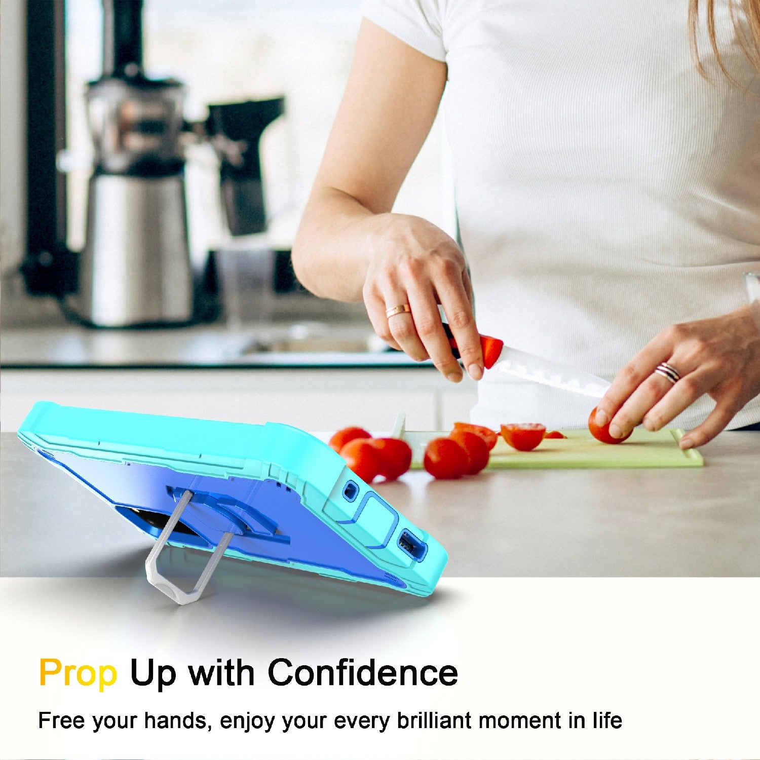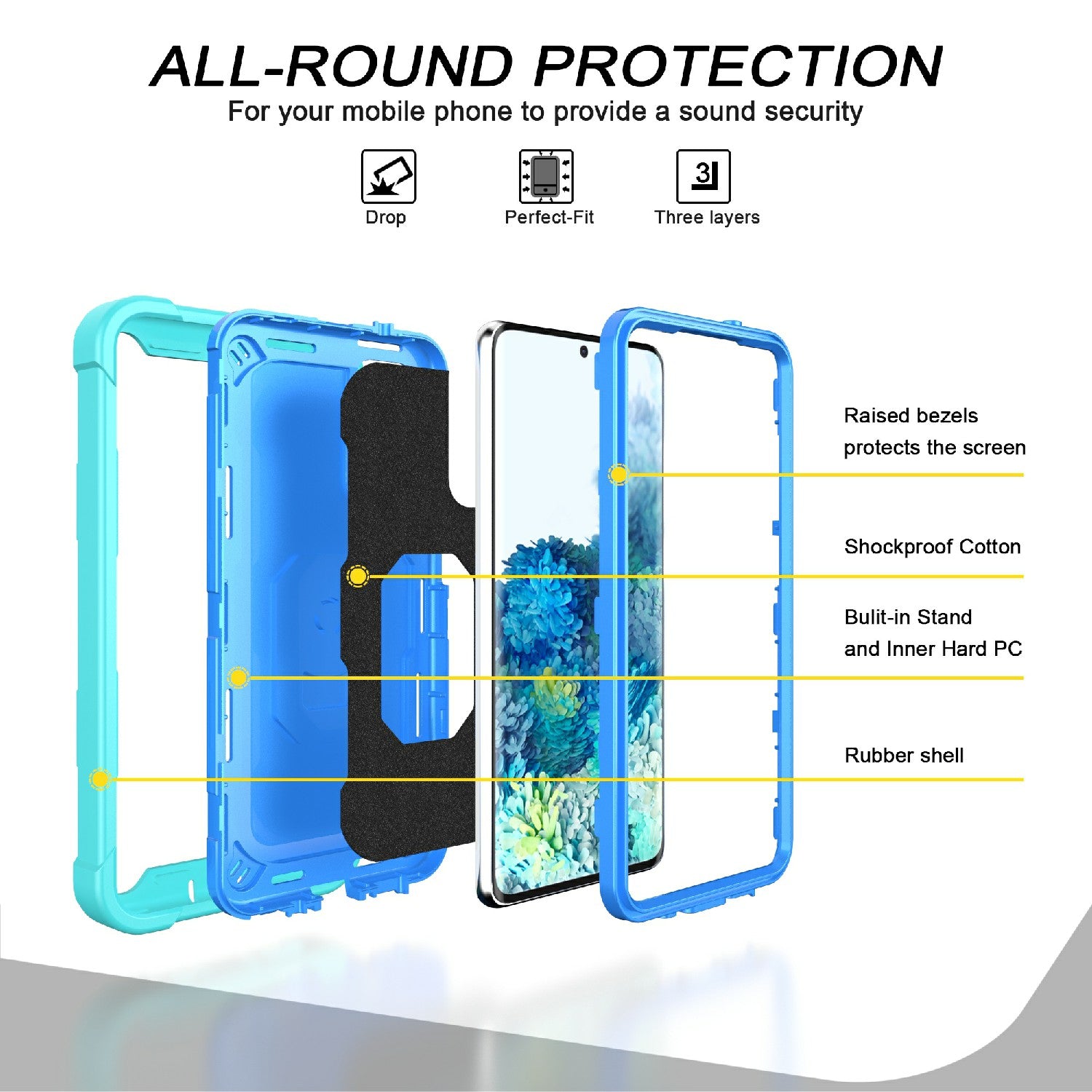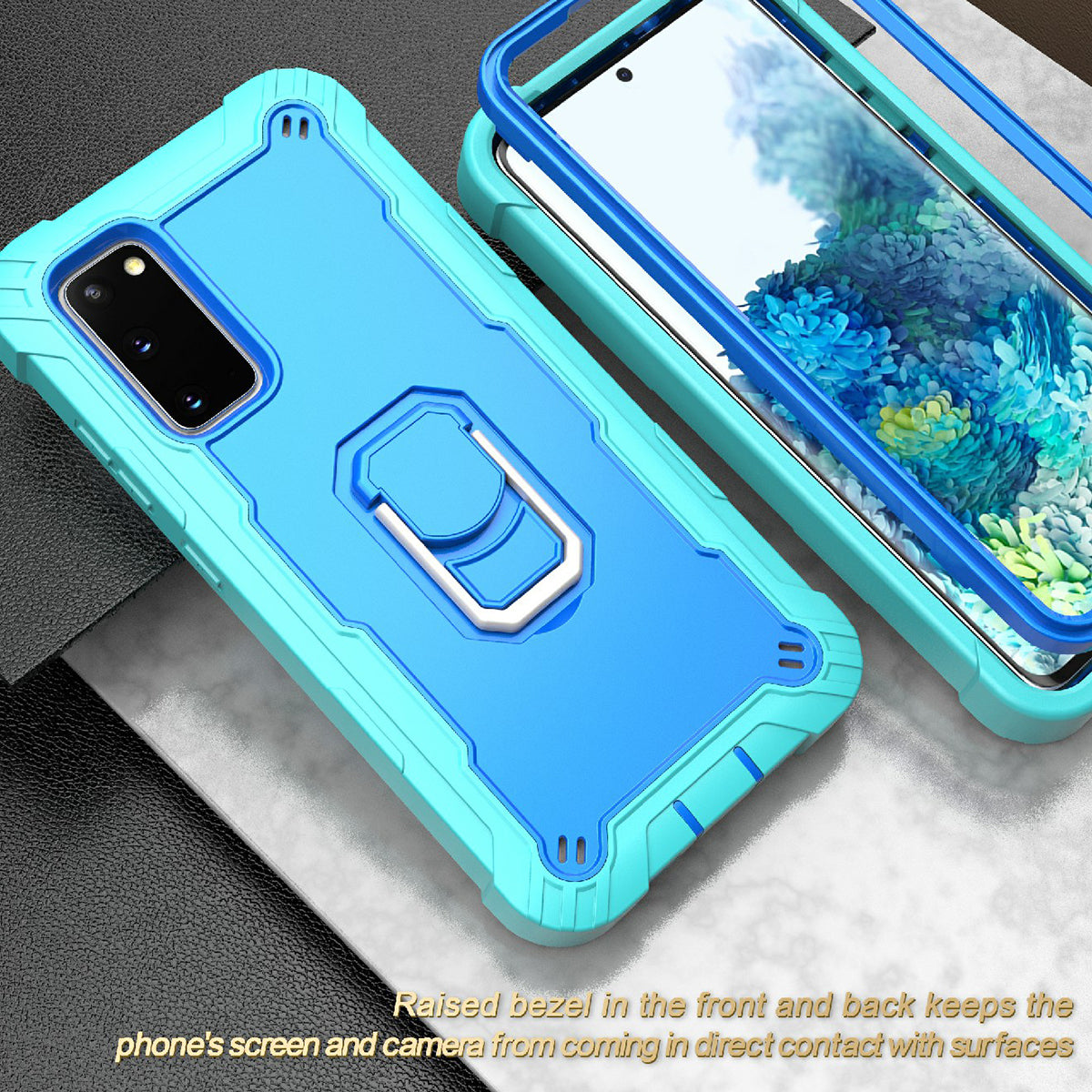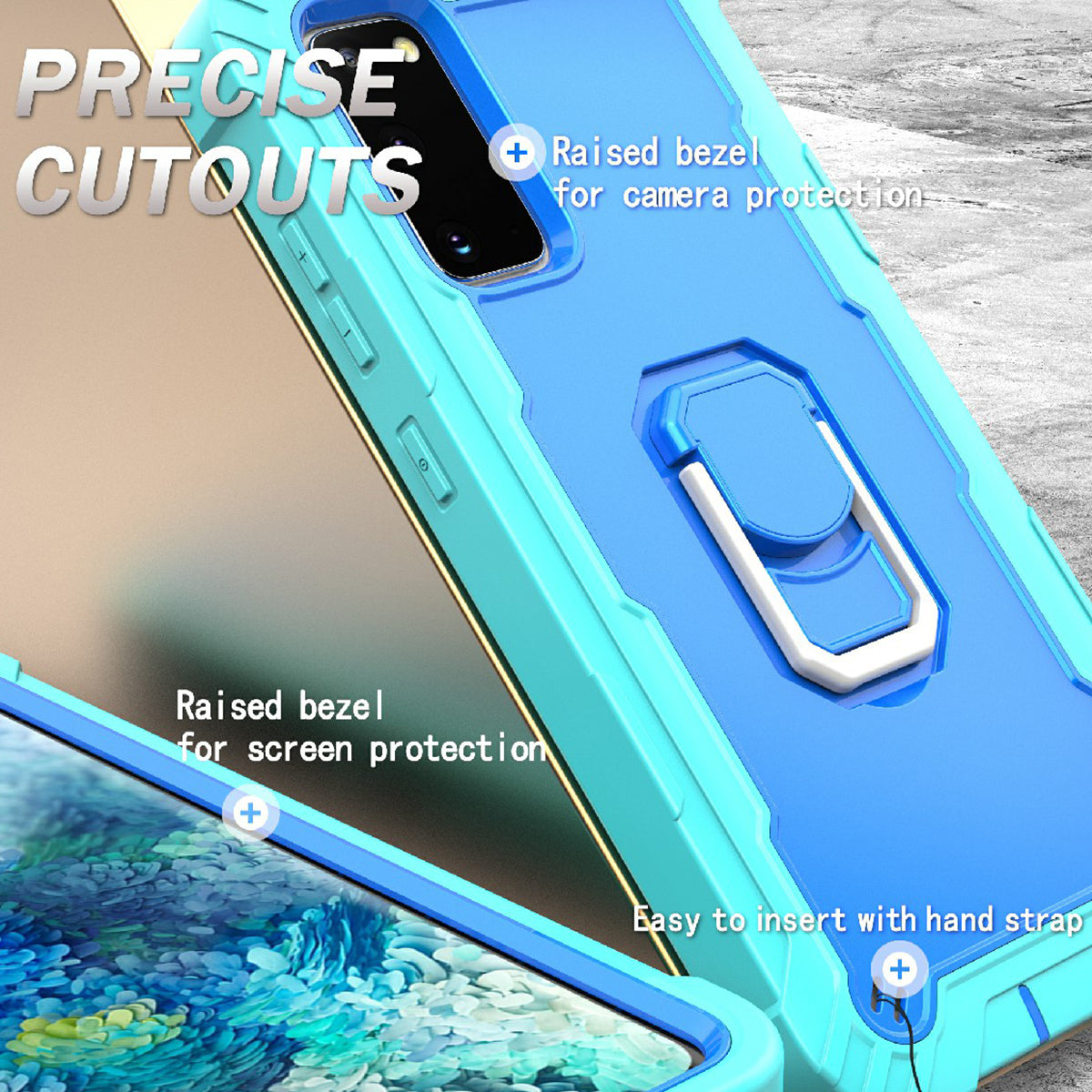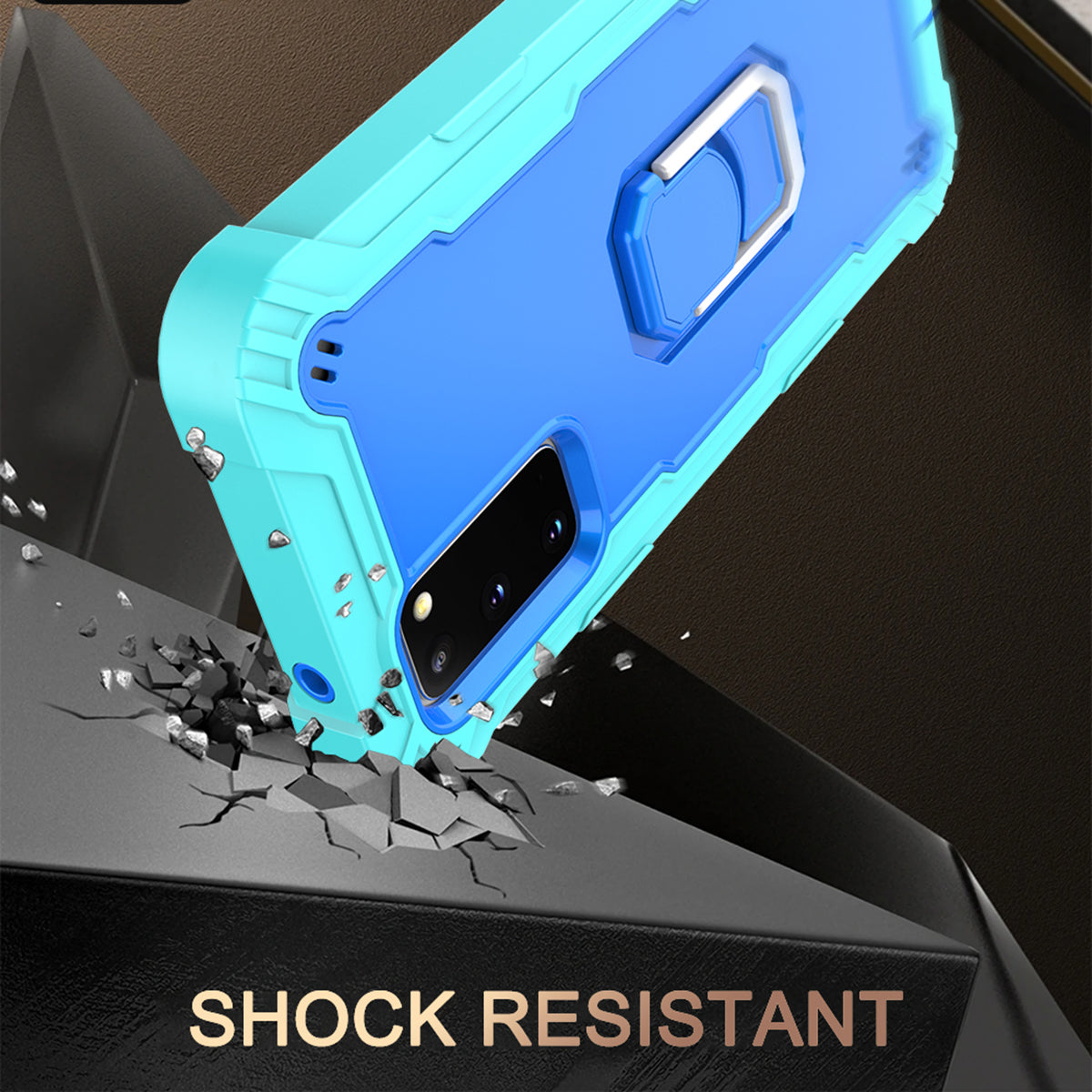 Shockproof PC + Silicone Phone Case with Built-in Kickstand Design for Samsung Galaxy S20 FE/S20 Fan Edition/S20 FE 5G/S20 Fan Edition 5G/S20 Lite/S20 FE 2022 - Aqua/Blue