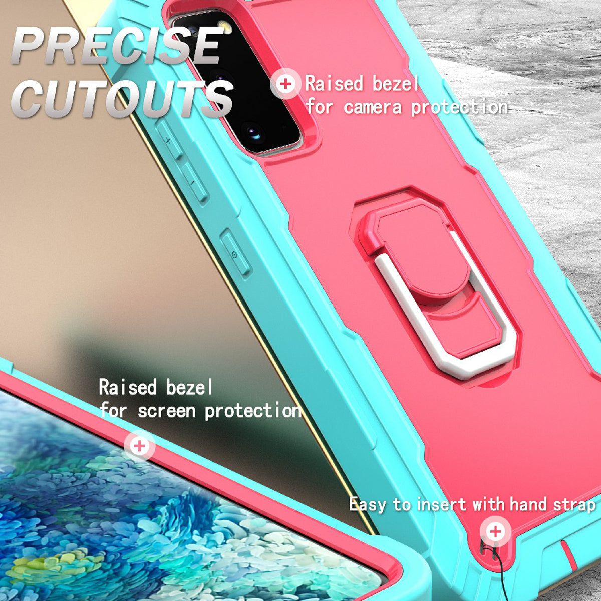 Shockproof PC + Silicone Phone Case with Built-in Kickstand Design for Samsung Galaxy S20 FE/S20 Fan Edition/S20 FE 5G/S20 Fan Edition 5G/S20 Lite/S20 FE 2022 - Aqua/Rose Red