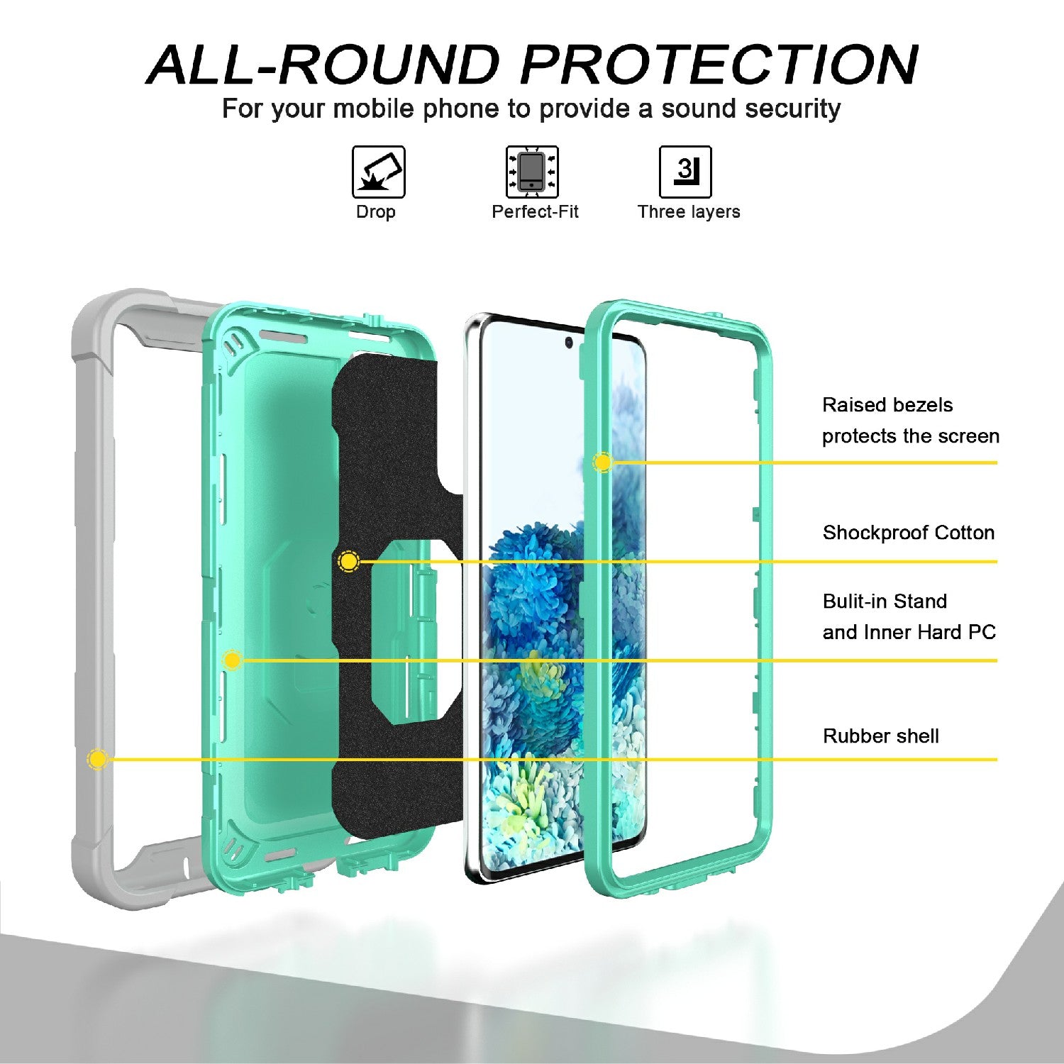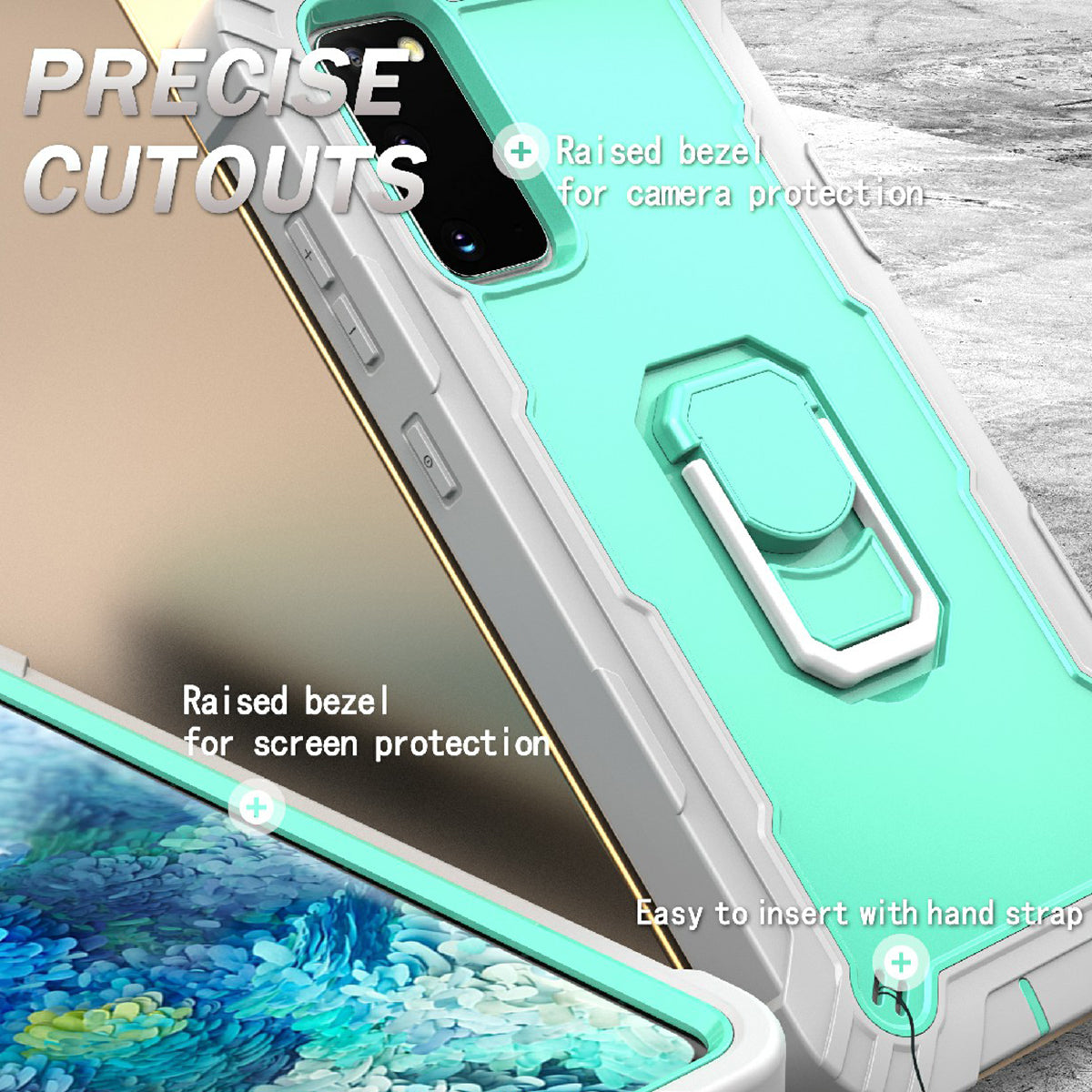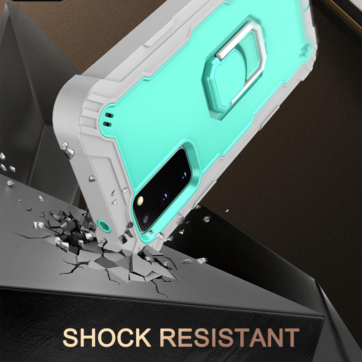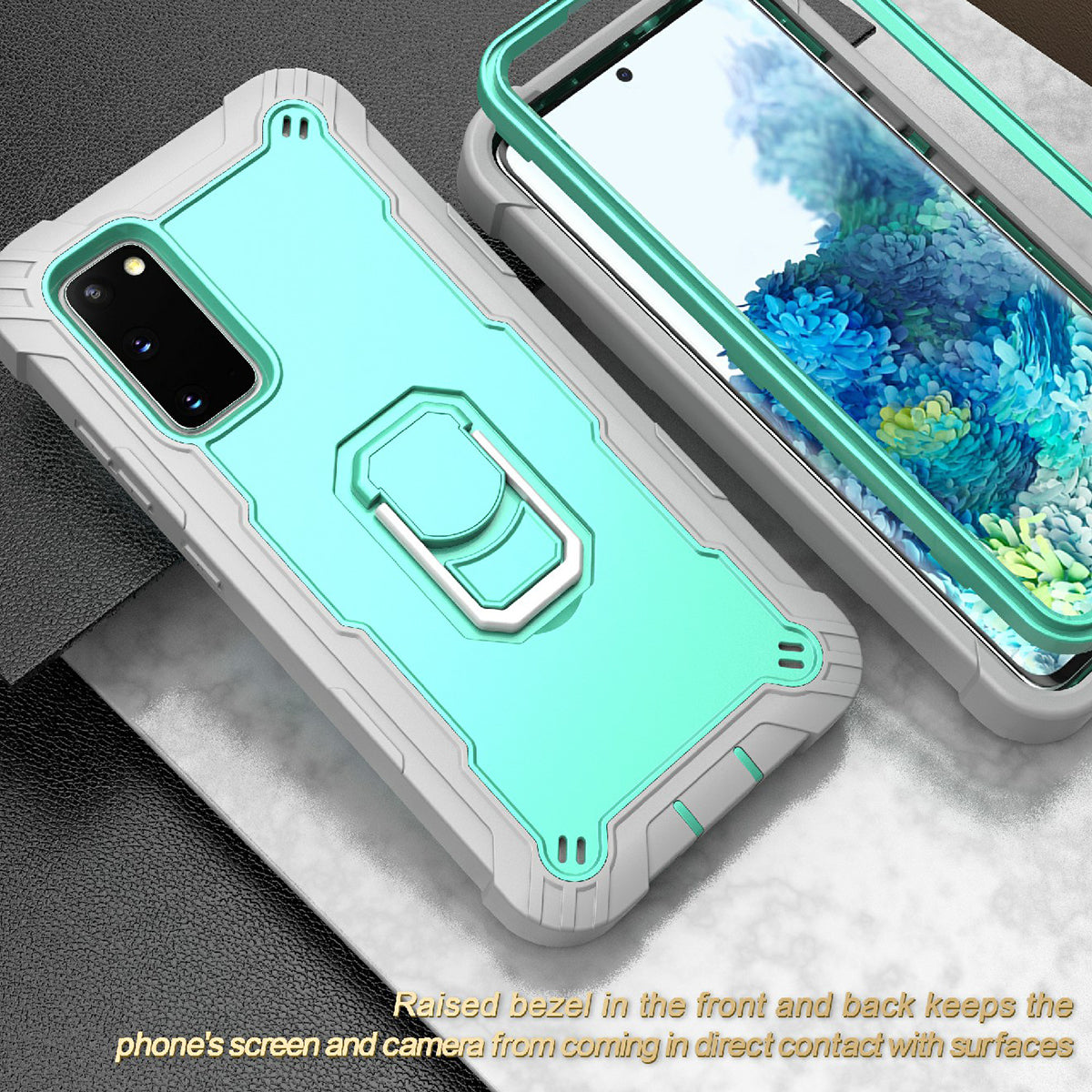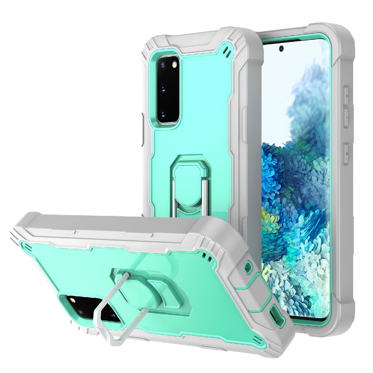 Shockproof PC + Silicone Phone Case with Built-in Kickstand Design for Samsung Galaxy S20 FE/S20 Fan Edition/S20 FE 5G/S20 Fan Edition 5G/S20 Lite/S20 FE 2022 - Grey/Aqua