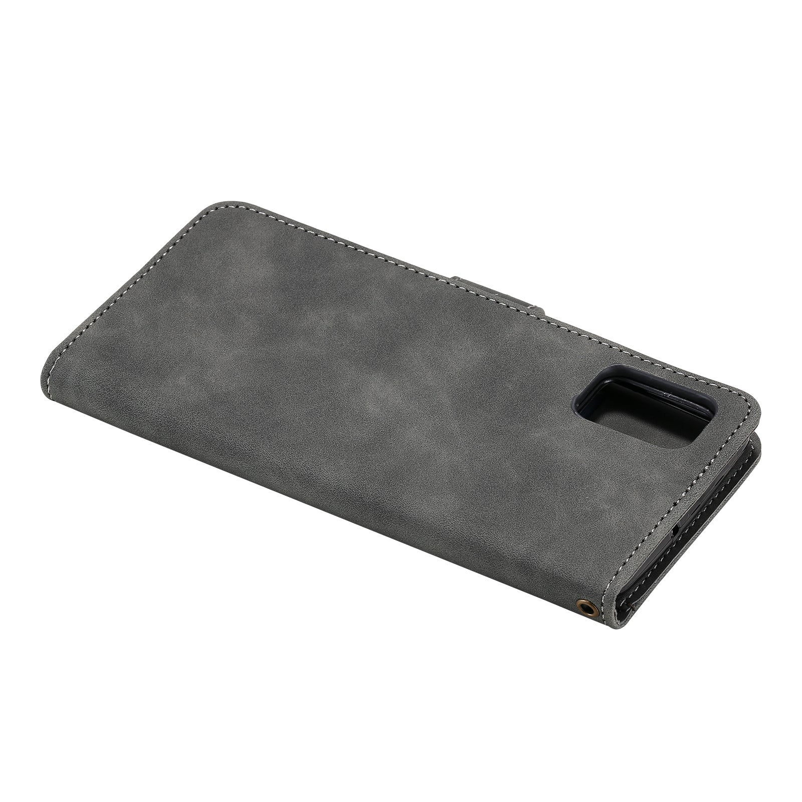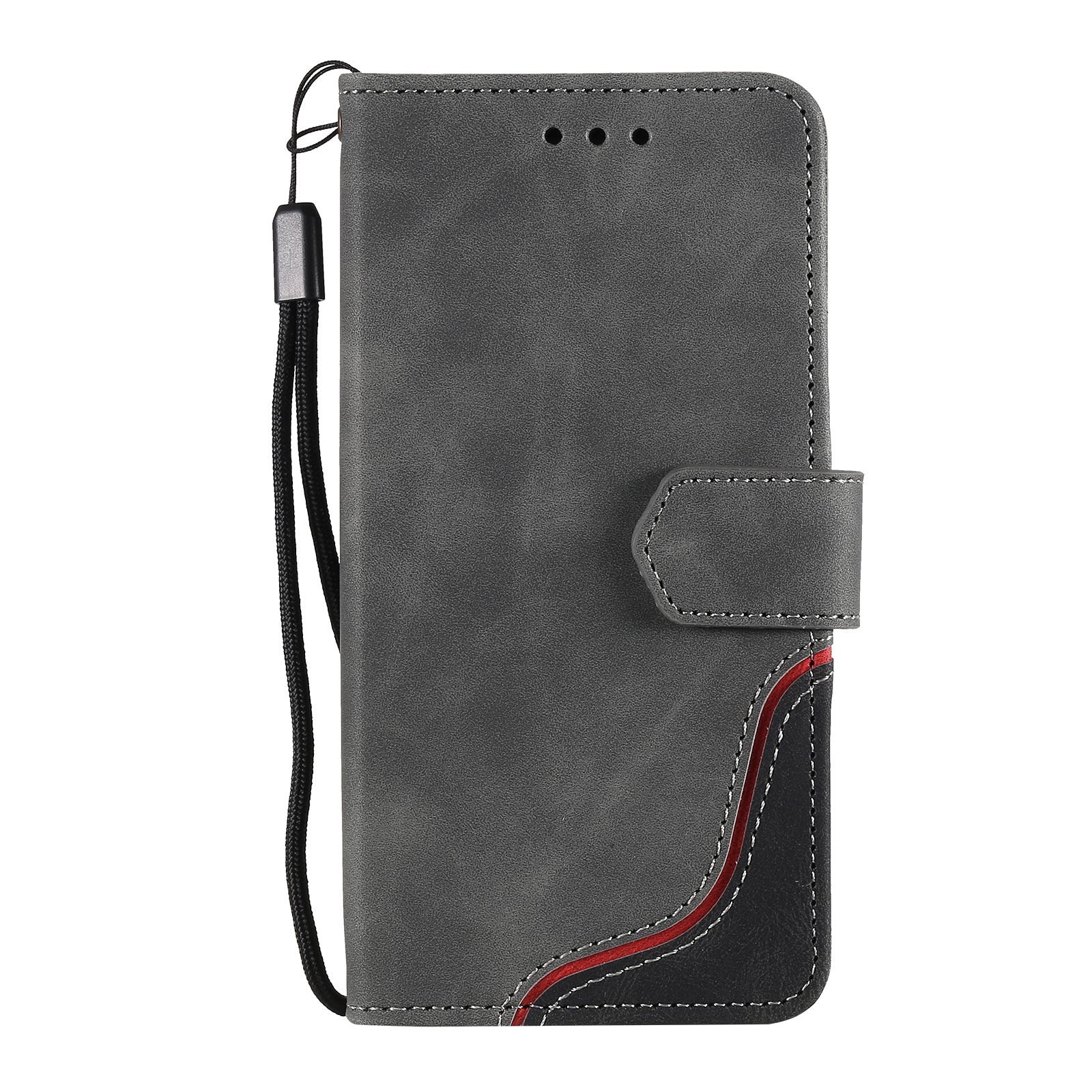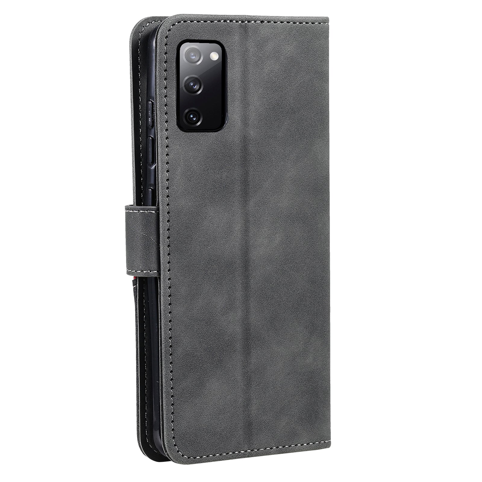Skin-Feel Tri-Color Splicing PU Leather Wallet Phone Case Stand Cover for Samsung Galaxy S20 FE 2022/S20 FE 4G/S20 FE 5G/S20 Lite - Grey