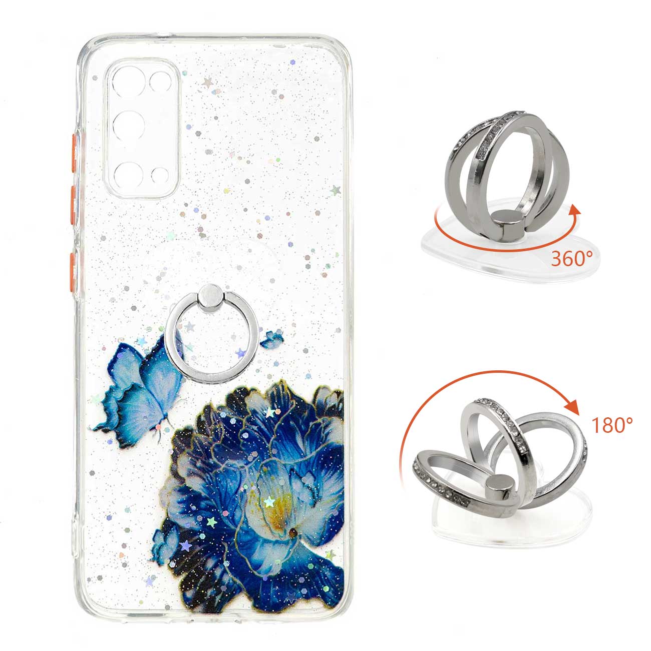 •1 x Ring Holder Kickstand TPU + PC Hybrid Phone Case