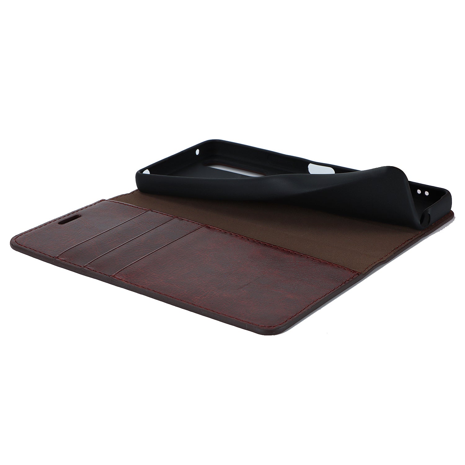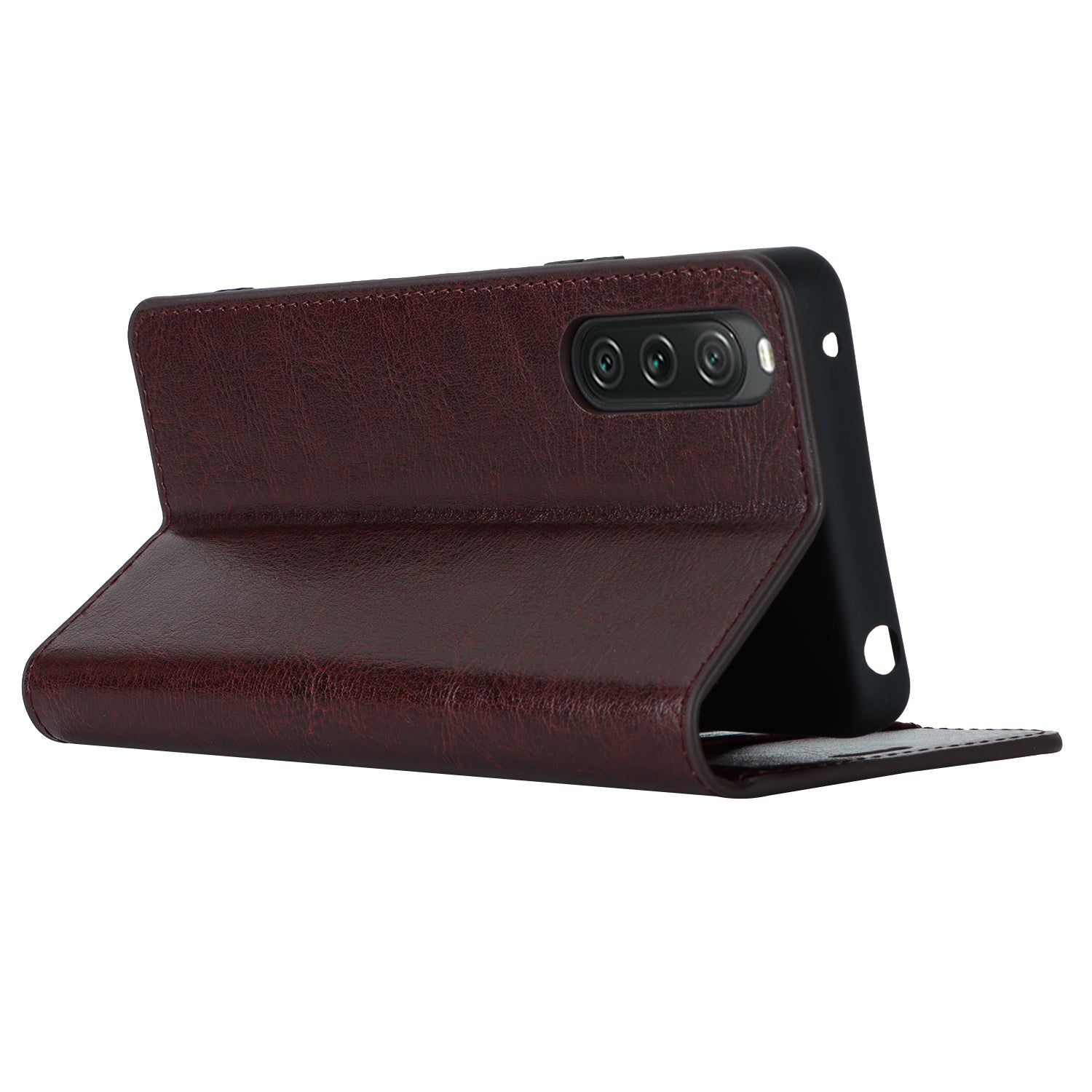 Stand Wallet for Sony Xperia 10 V Crazy Horse Texture Phone Case Genuine Cow Leather Cover - Dark Brown