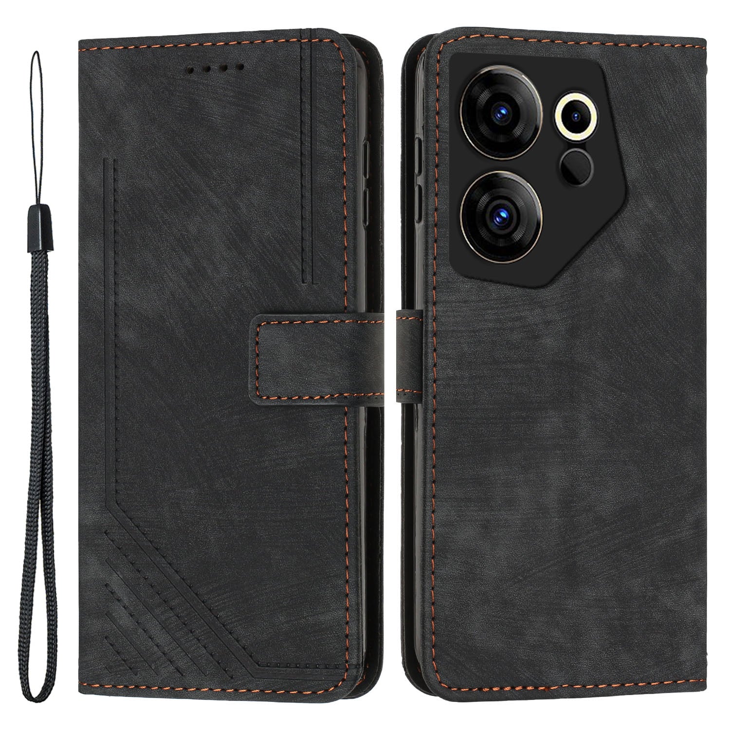 Stand Wallet for Tecno Camon 20 Premier 5G Skin-touch Imprinted Lines Case Phone Leather Cover - Black