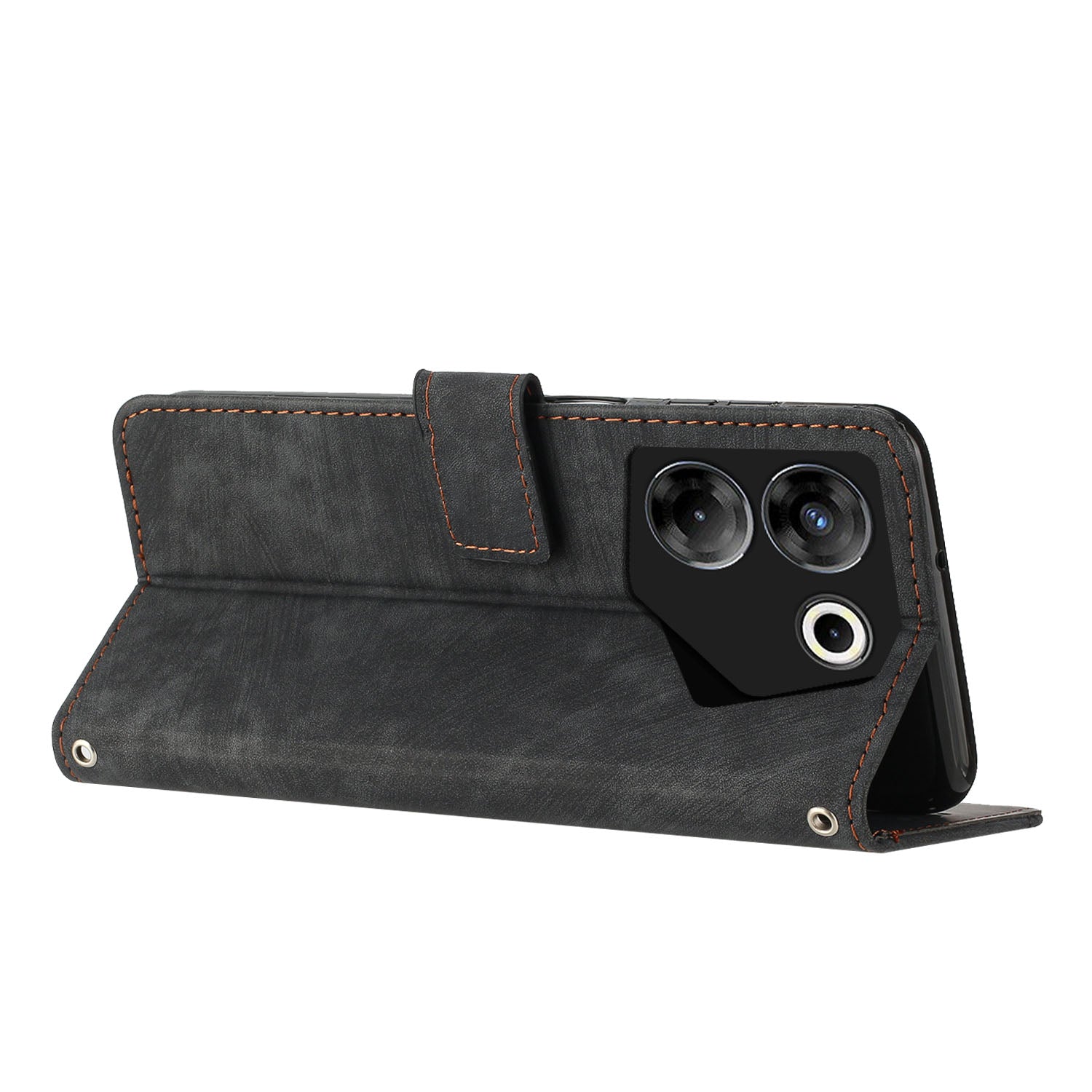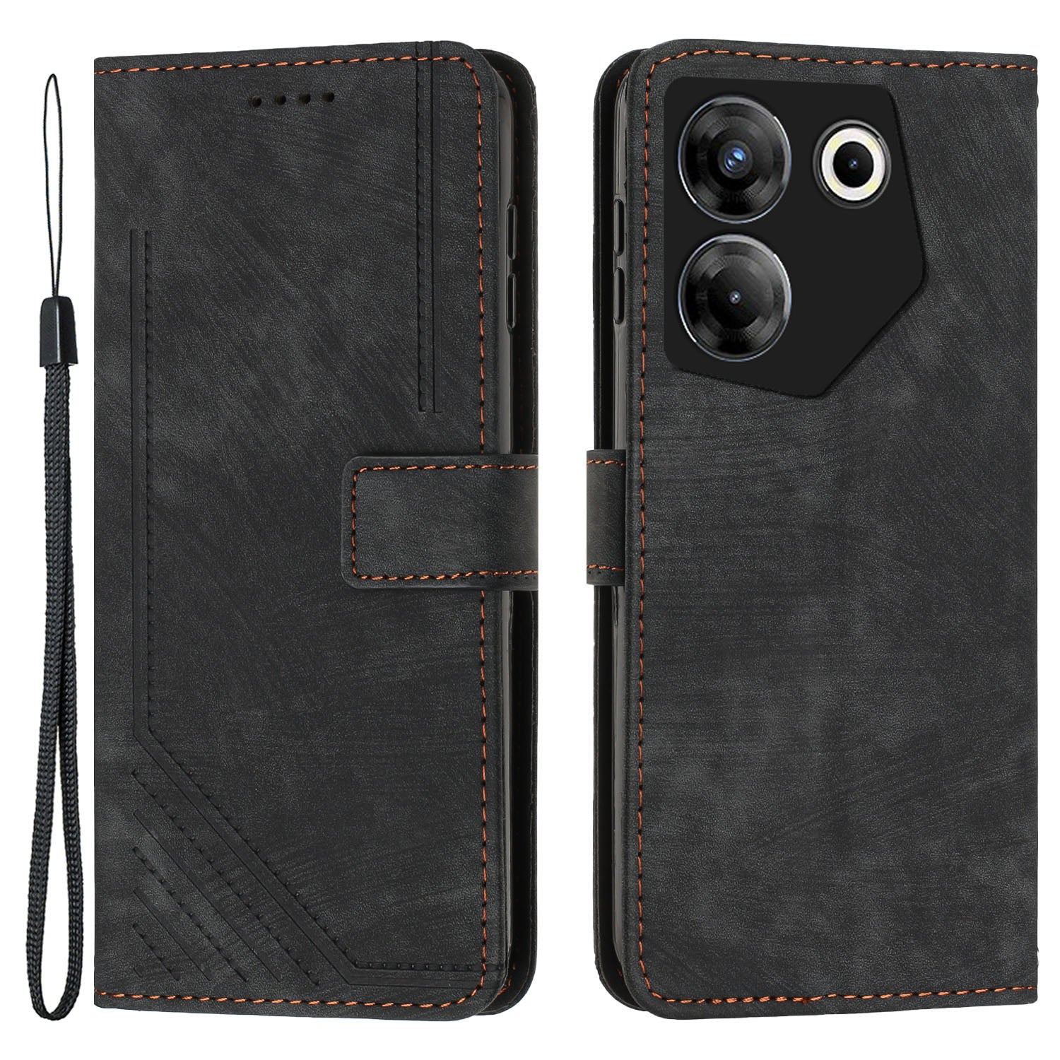 Stand Wallet for Tecno Camon 20 Pro 5G Skin-touch Imprinted Lines Flip Case PU Leather Phone Cover - Black