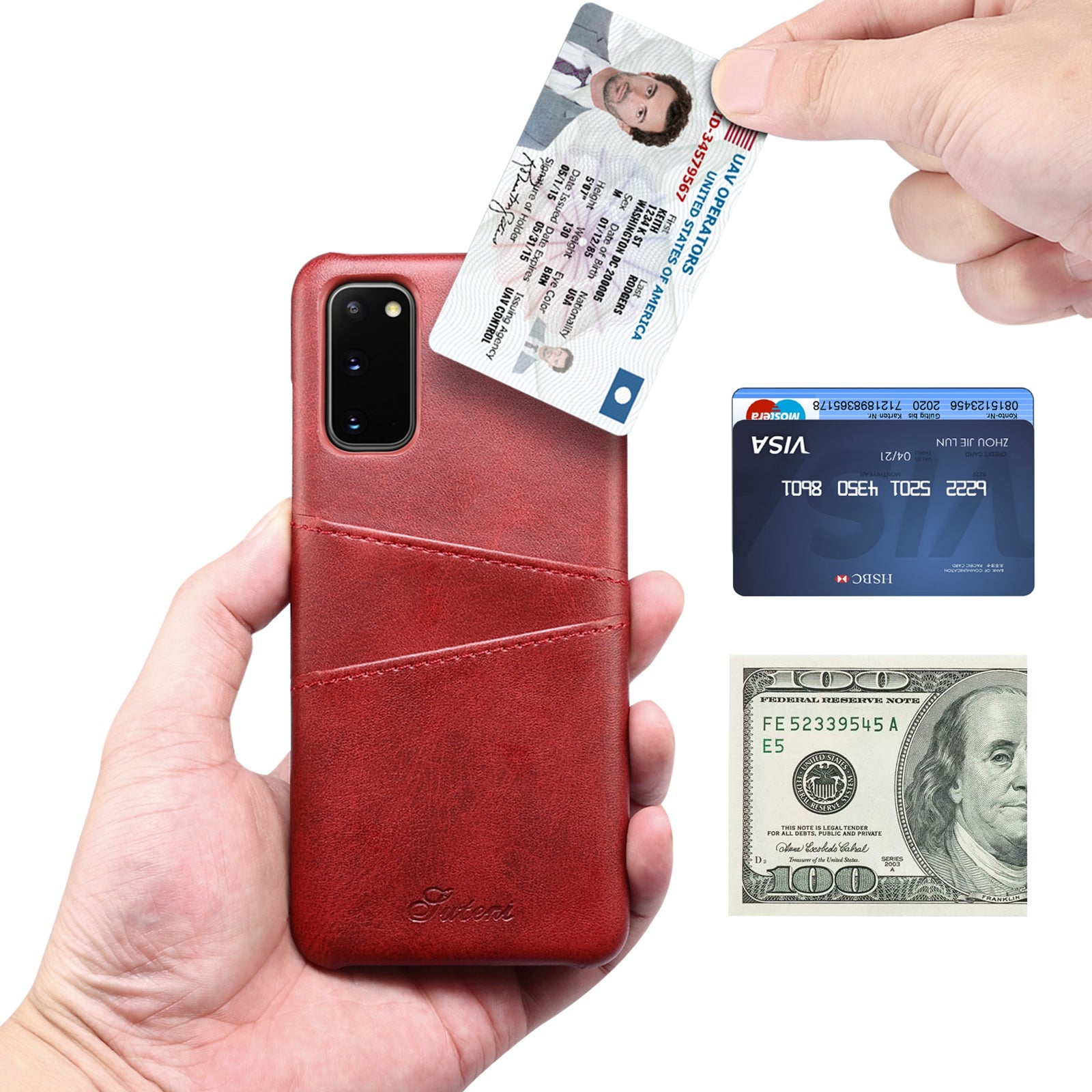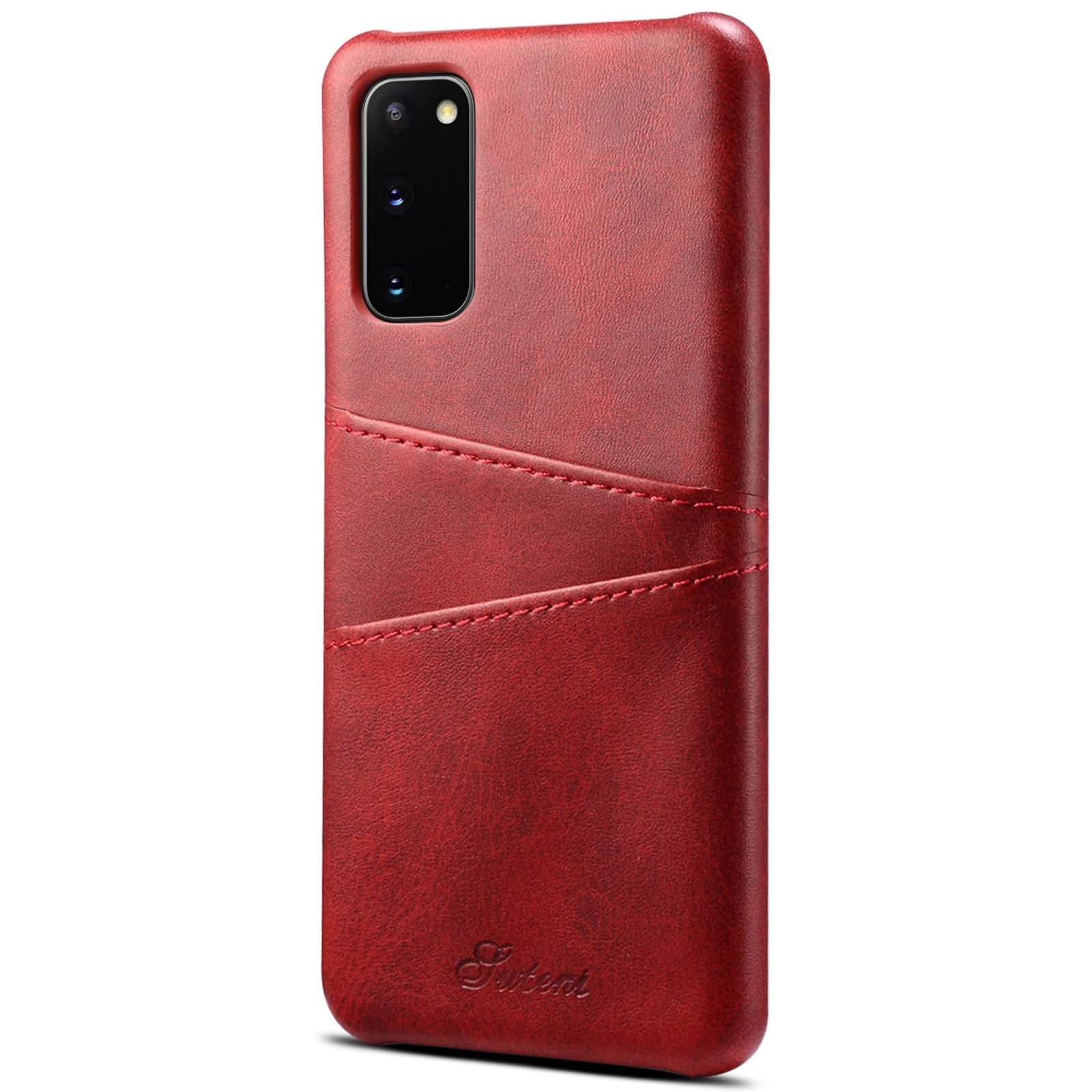 SUTENI PU Leather Coated PC Case with Non-Fully-Wrapped Design Card Holders Phone Protector for Samsung Galaxy S20 4G/S20 5G - Red