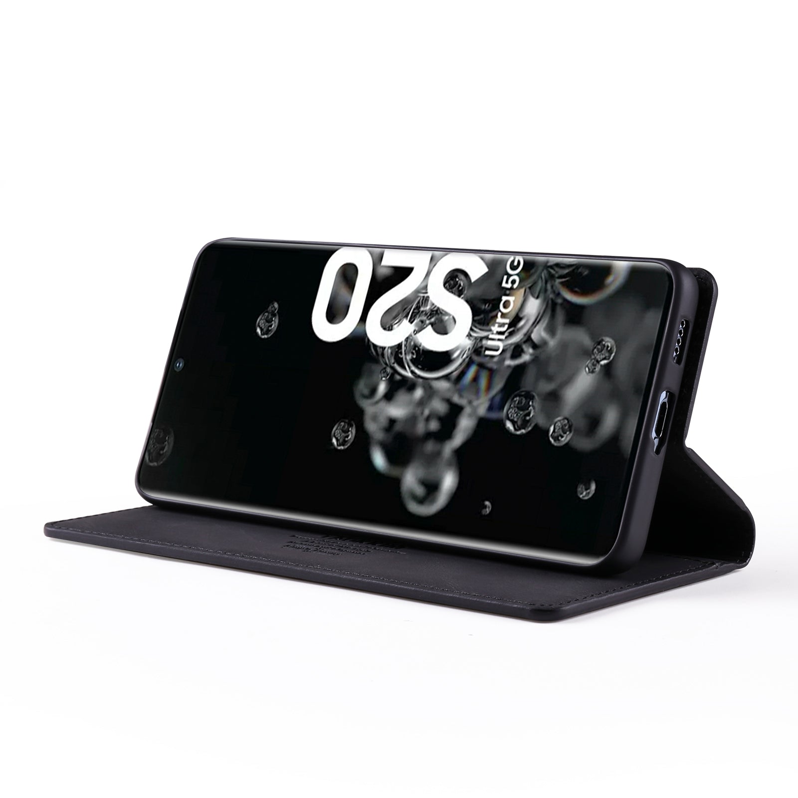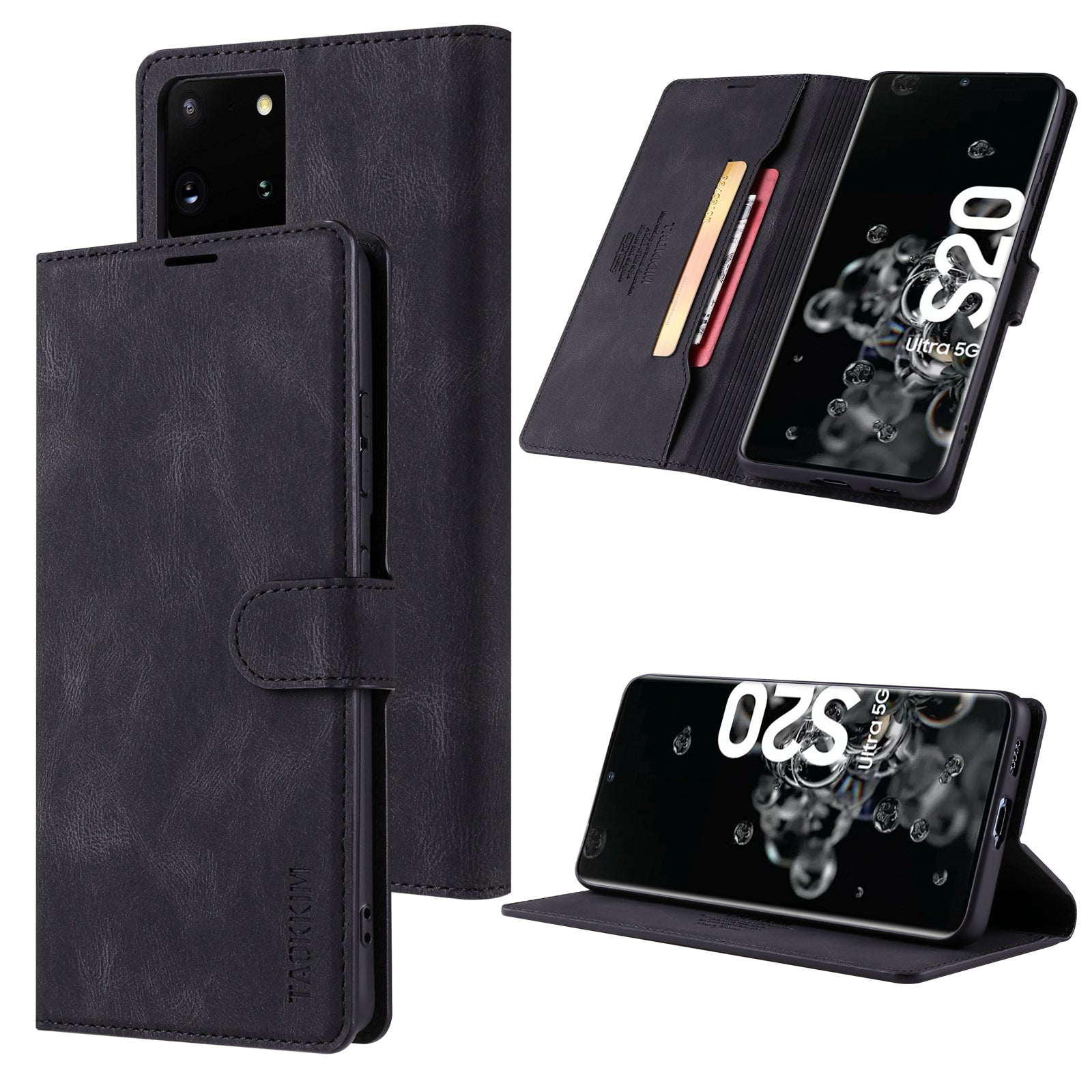 TAOKKIM Protective Leather Wallet Case Drop-resistant Phone Cover with Stand for Samsung Galaxy S20 Ultra - Black