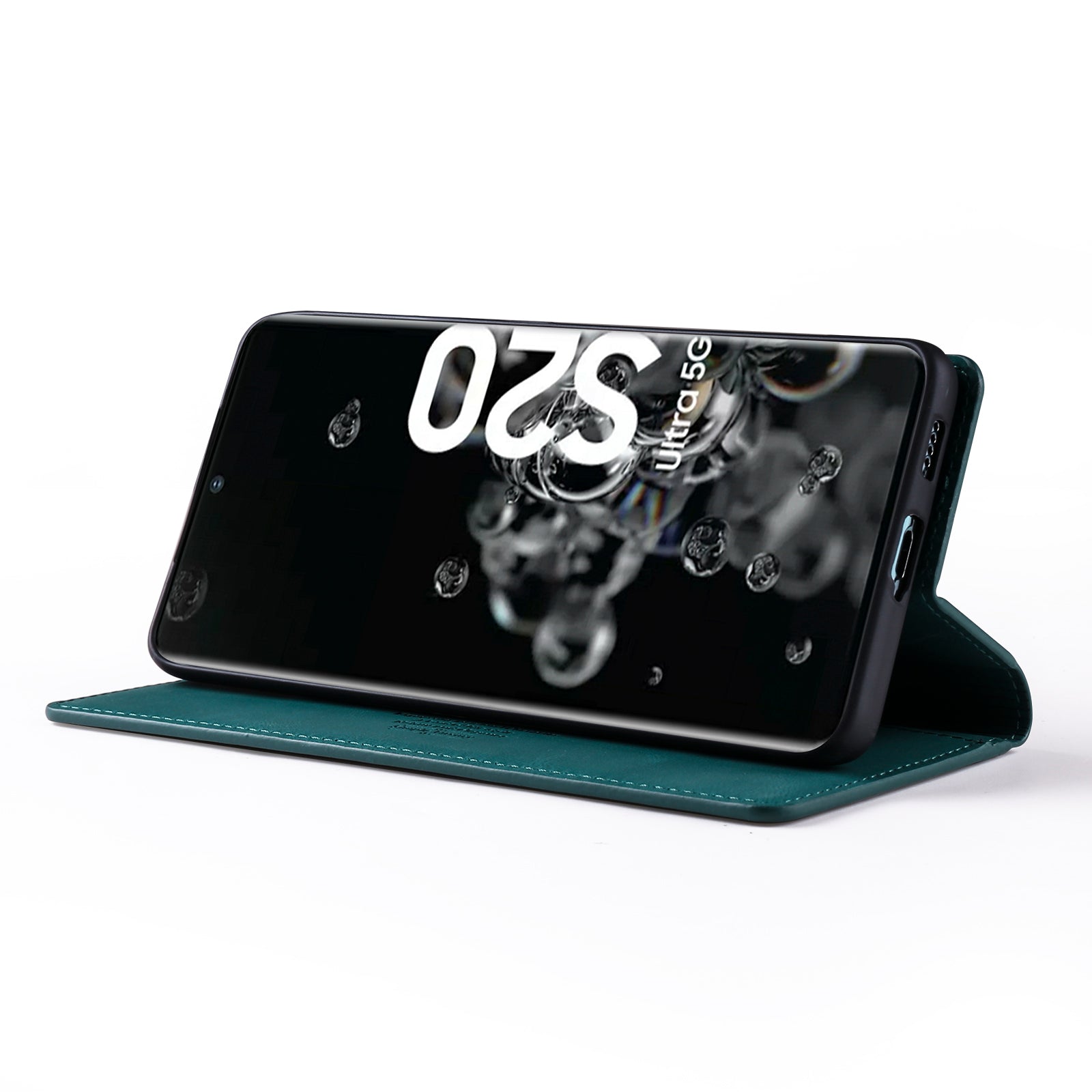 TAOKKIM Protective Leather Wallet Case Drop-resistant Phone Cover with Stand for Samsung Galaxy S20 Ultra - Green