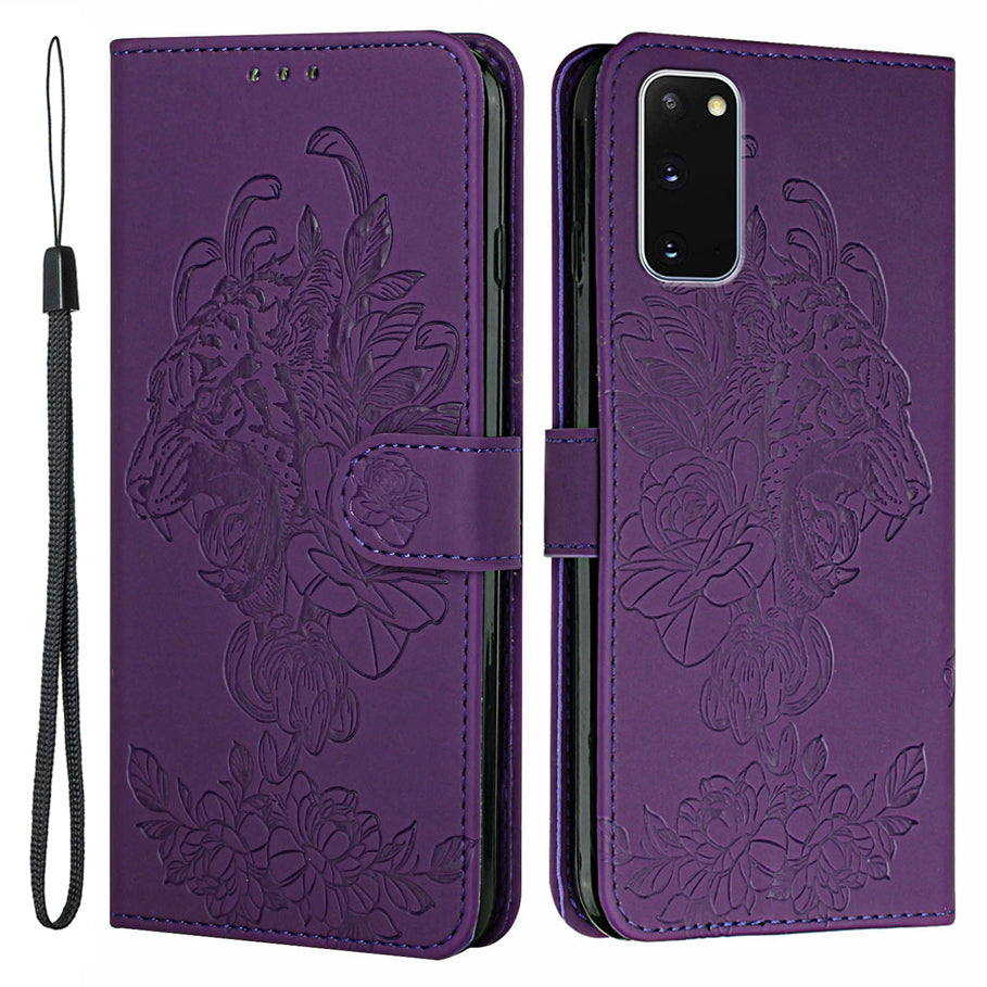 Tiger Head Pattern Imprinting Leather Wallet Stand Case for Samsung Galaxy S20 4G/S20 5G - Purple