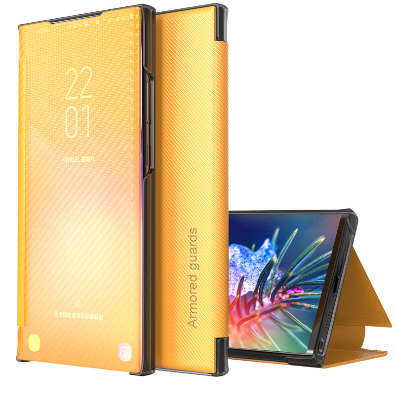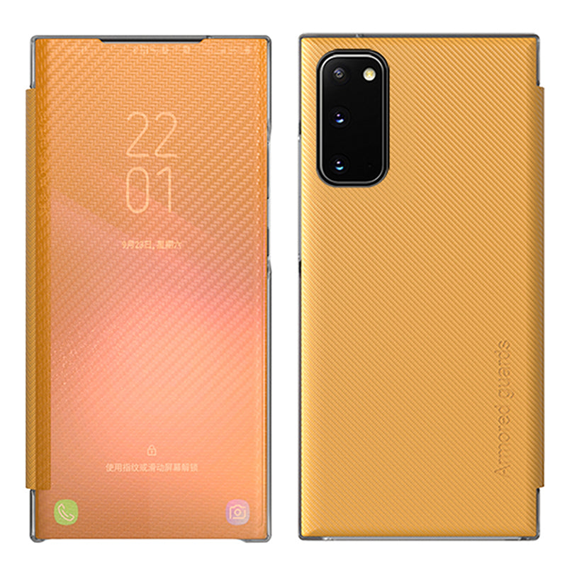 Translucent Anti-Fingerprint Folio Flip Carbon Fiber Hard PC Kickstand Case for Samsung Galaxy S20 4G/S20 5G - Yellow