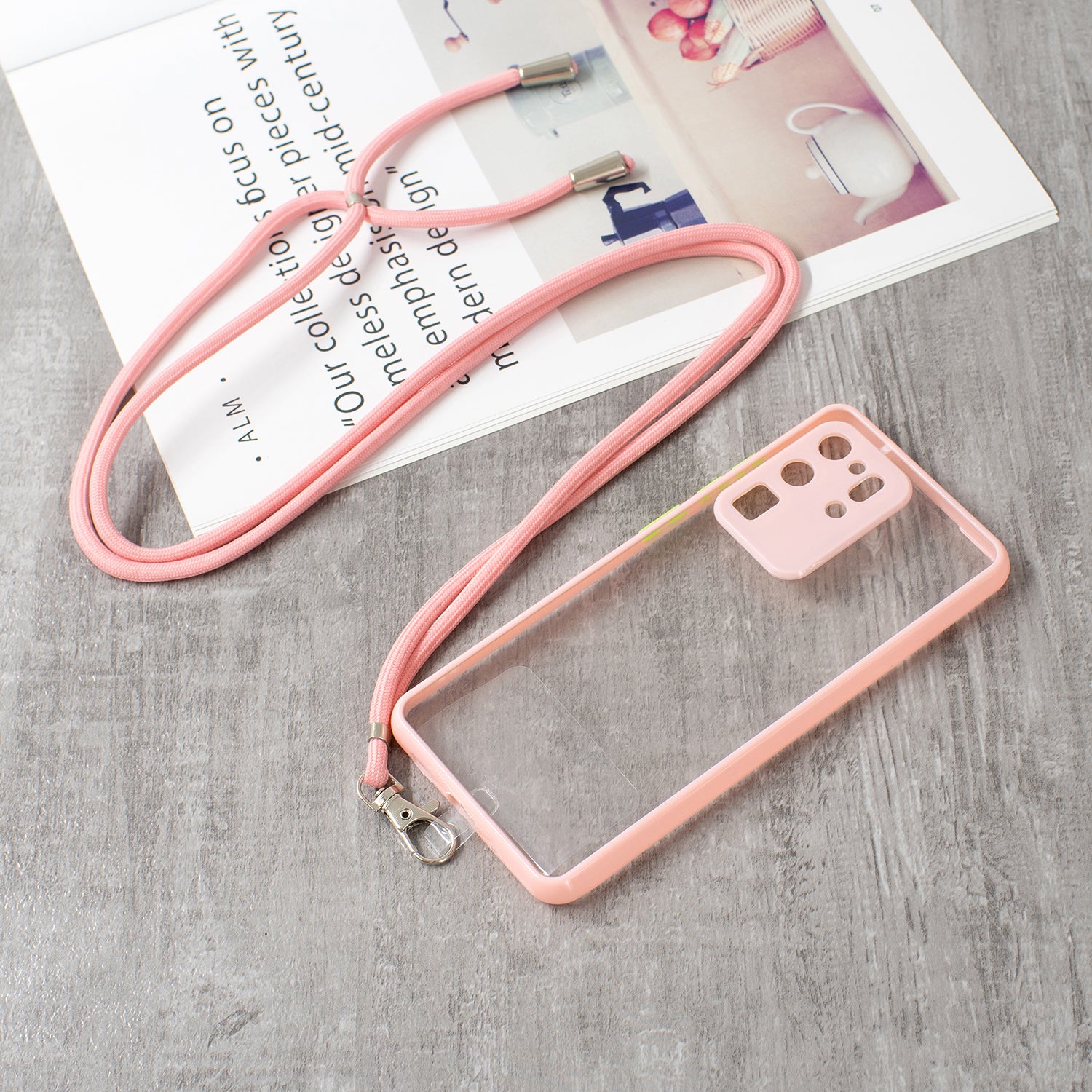 Transparent TPU + Acrylic Combo Back Phone Cover Shell with Lanyard for Samsung Galaxy S20 Ultra 4G/5G - Pink