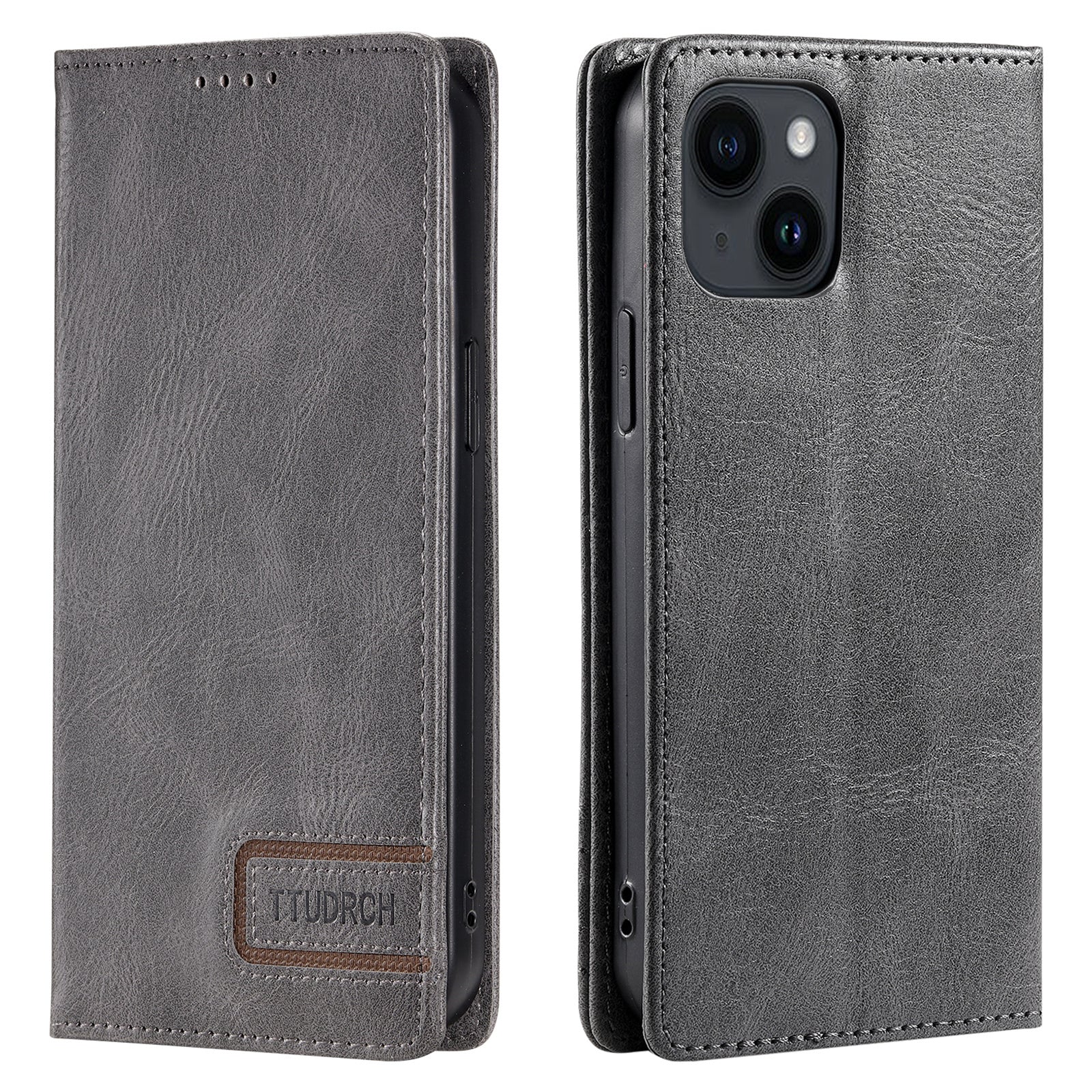 TTUDRCH Style 007 For iPhone 15 RFID Blocking Cover Phone Leather Case with Stand Wallet - Grey
