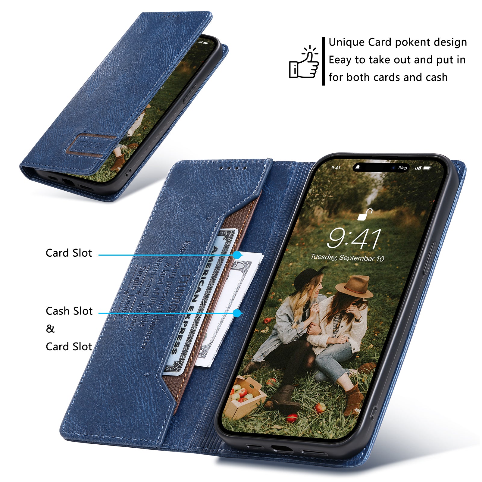 Uniqkart Style 007 For iPhone 15 Ultra RFID Blocking Stand Phone Case Wallet PU Leather Cover - Blue