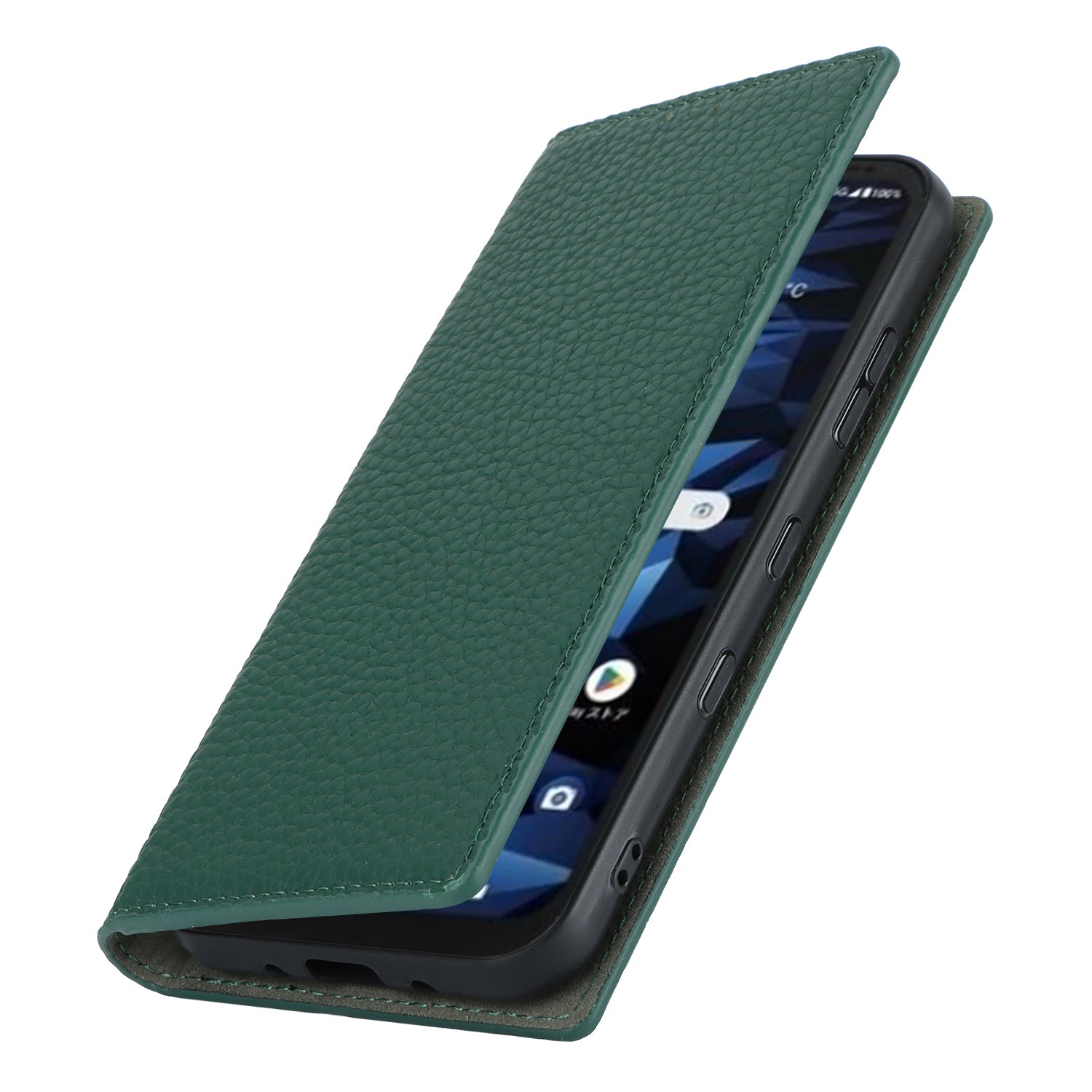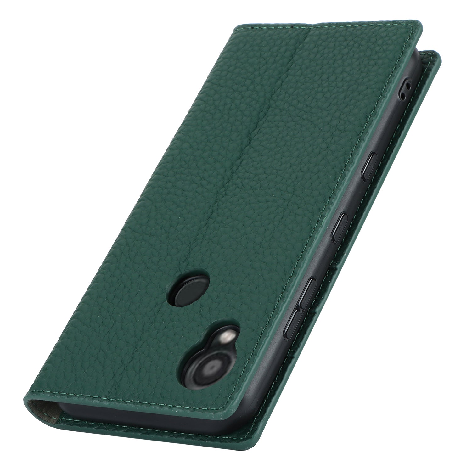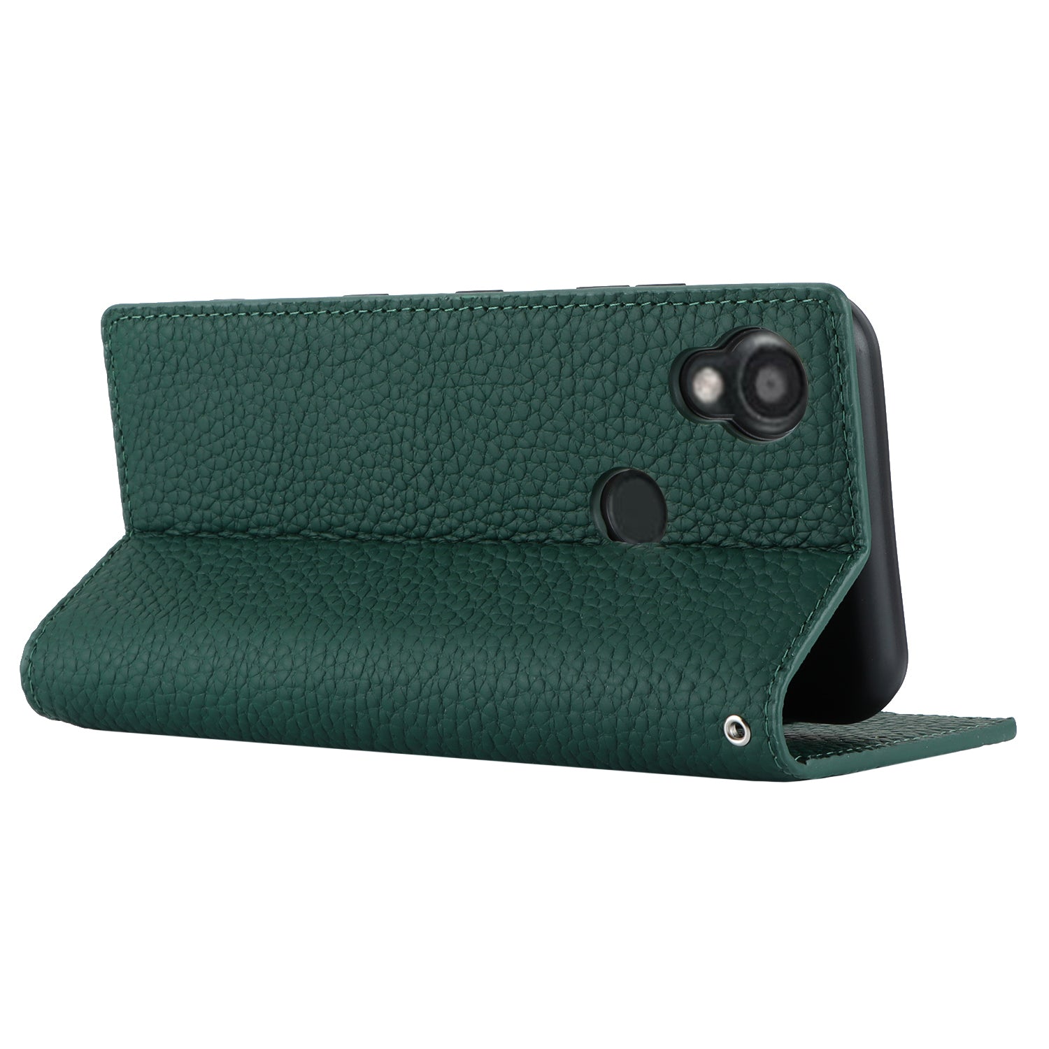 Wallet Cover for Kyocera Digno SX3 KYG02 Litchi Texture Genuine Cow Leather Phone Stand Case with Strap - Green