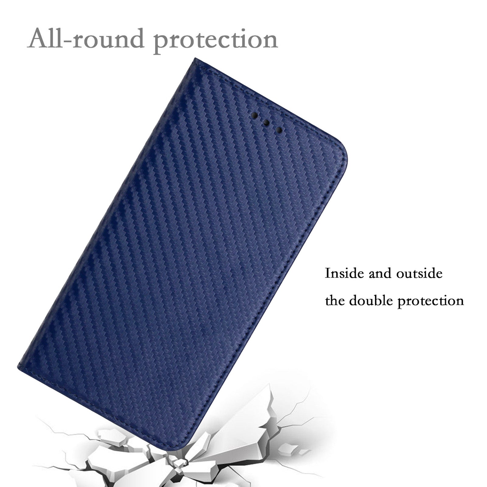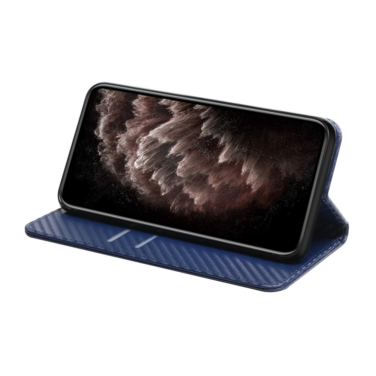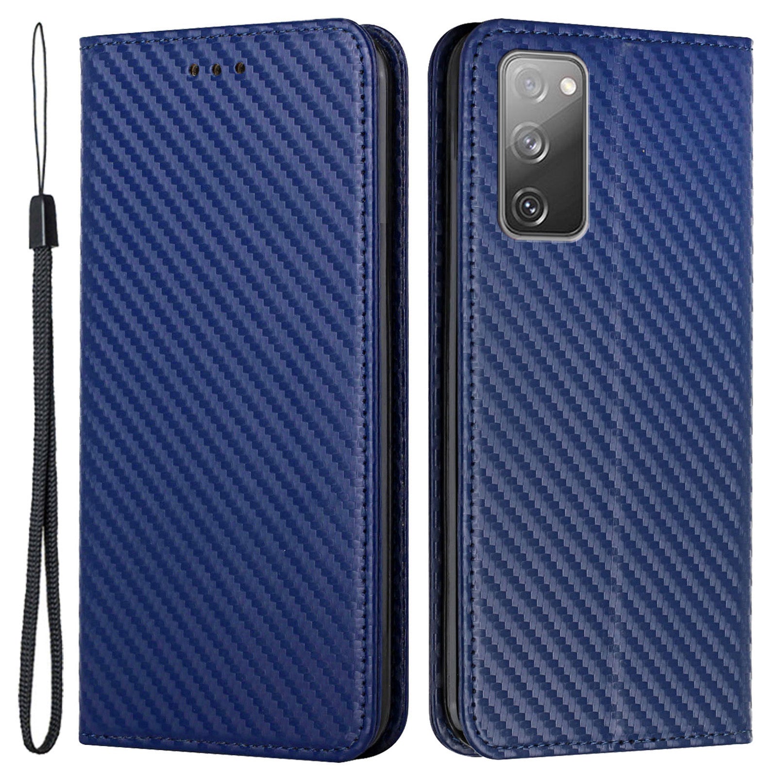 Wallet Design Carbon Fiber Texture Stand Auto-absorbed Leather Case Cover with Hand Strap for Samsung Galaxy S20 FE 2022/S20 FE 4G/5G/S20 Lite - Blue