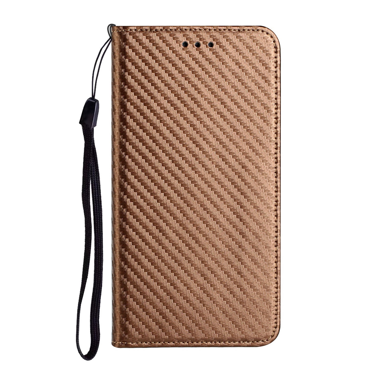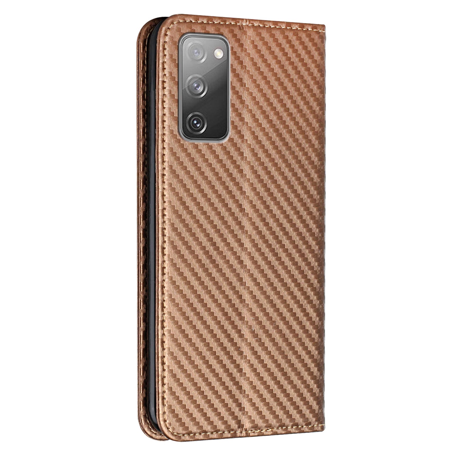 Wallet Design Carbon Fiber Texture Stand Auto-absorbed Leather Case Cover with Hand Strap for Samsung Galaxy S20 FE 2022/S20 FE 4G/5G/S20 Lite - Brown