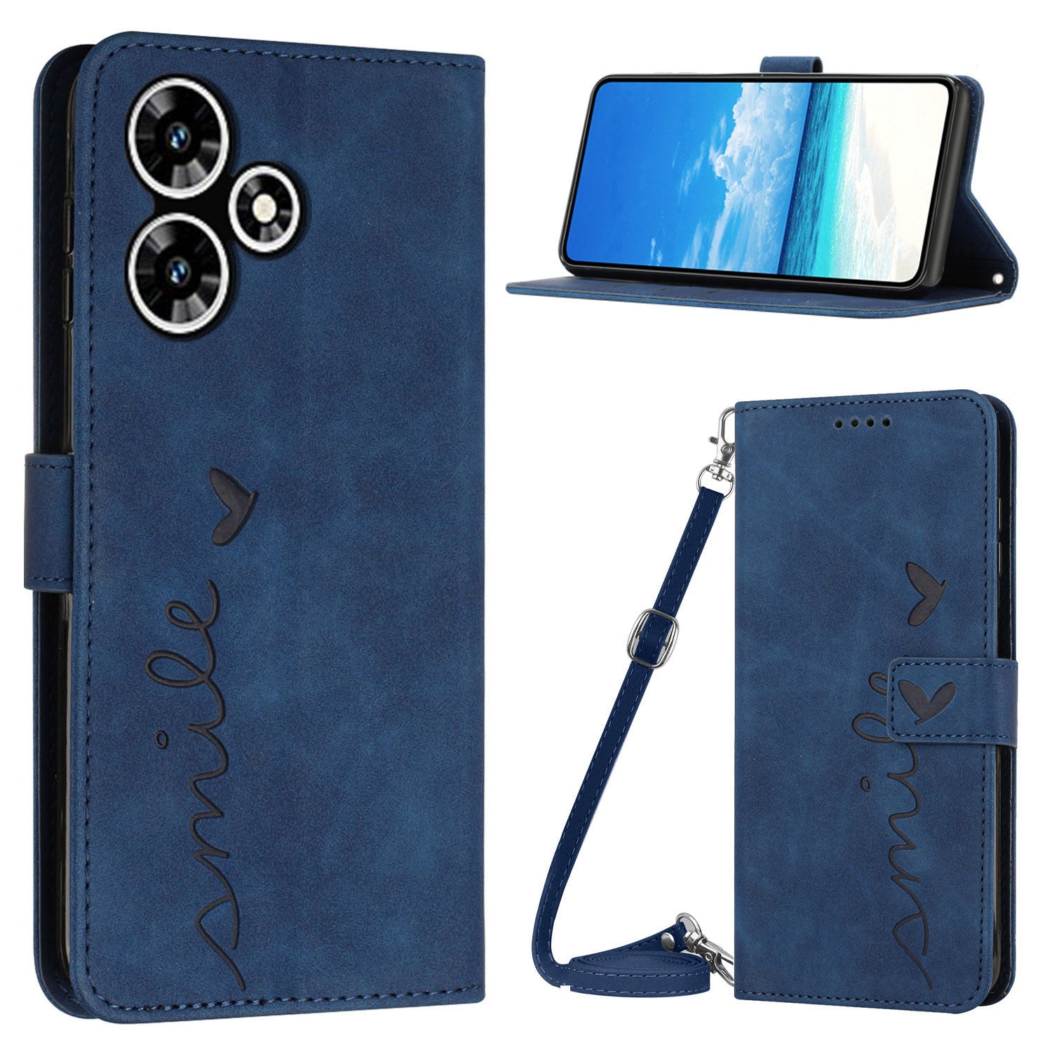 Wallet PU Leather Case for Infinix Hot 30 , Heart Shape Phone Stand Cover with Shoulder Strap - Sapphire