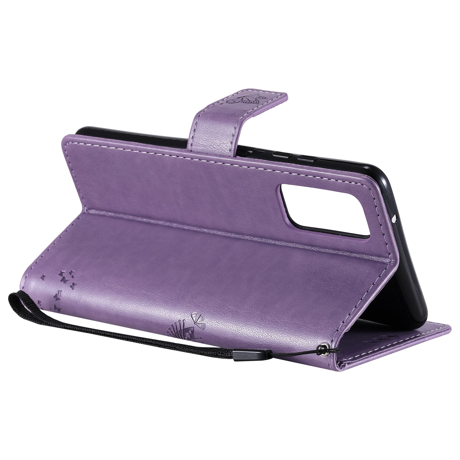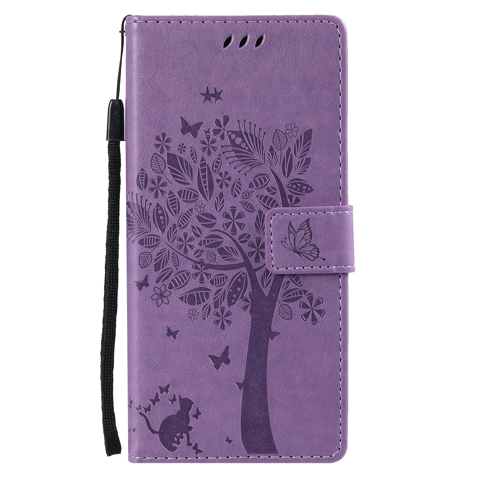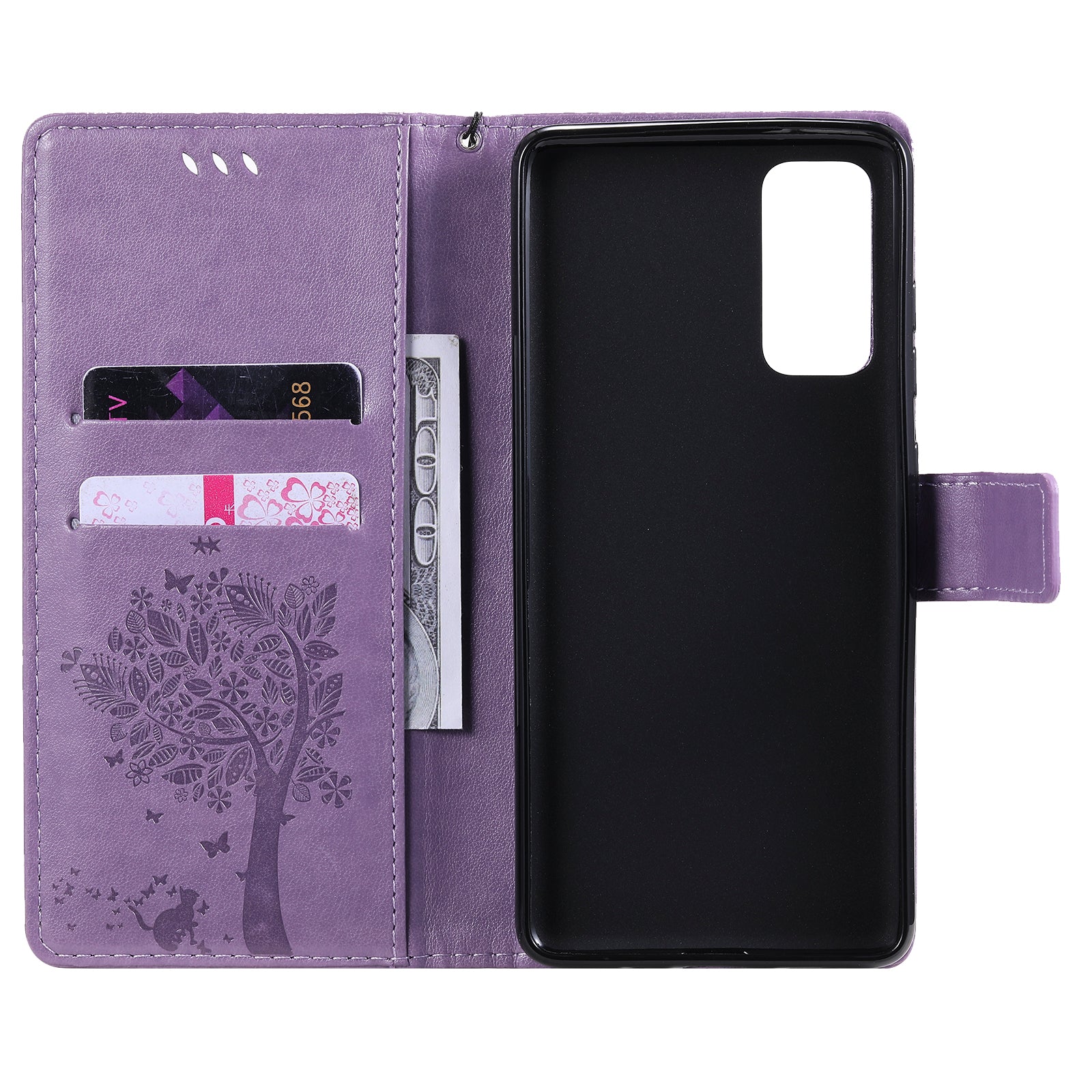 Wallet Stand Design Full Protection KT Imprinting Flower Series-3 Cat and Tree Imprinting Leather Cover + TPU Inner Phone Case for Samsung Galaxy S20 FE 2022/S20 FE 4G/S20 FE 5G/S20 Lite - Light Purple