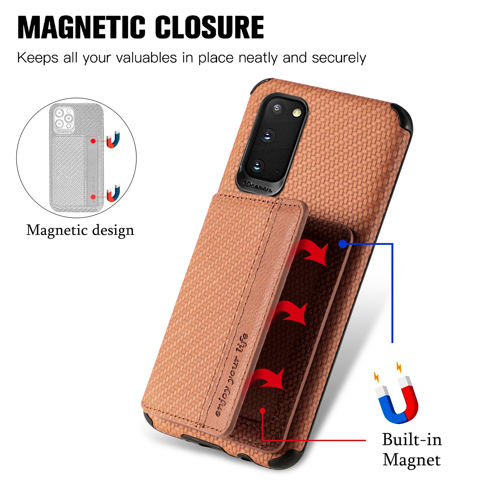 Woven Texture Kickstand Wallet Design PU Leather Coated Hybrid Phone Cover Case for Samsung Galaxy S20 4G/S20 5G - Brown