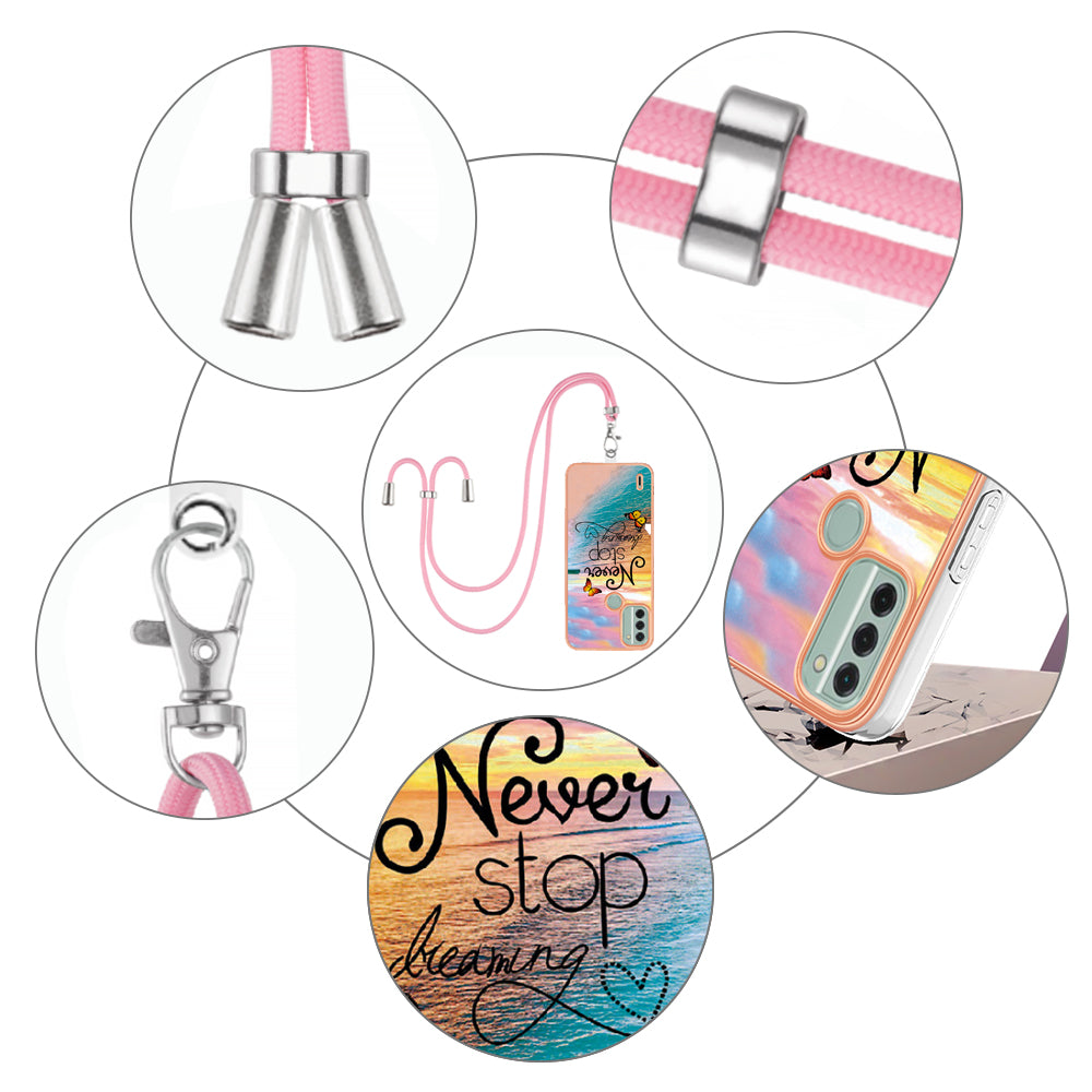 YB IMD Series-4 for Nokia C31 4G Electroplated Marble Flower Pattern Case IMD TPU Phone Cover with Lanyard - Never Stop Dreaming