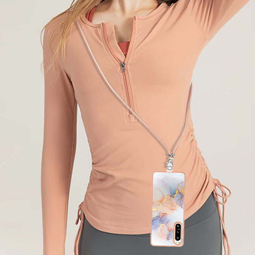 YB IMD Series-4 for Sony Xperia 5 IV 5G Plating Soft TPU Phone Case IMD Marble Flower Pattern Shockproof Cover with Lanyard - Milky Way Marble White