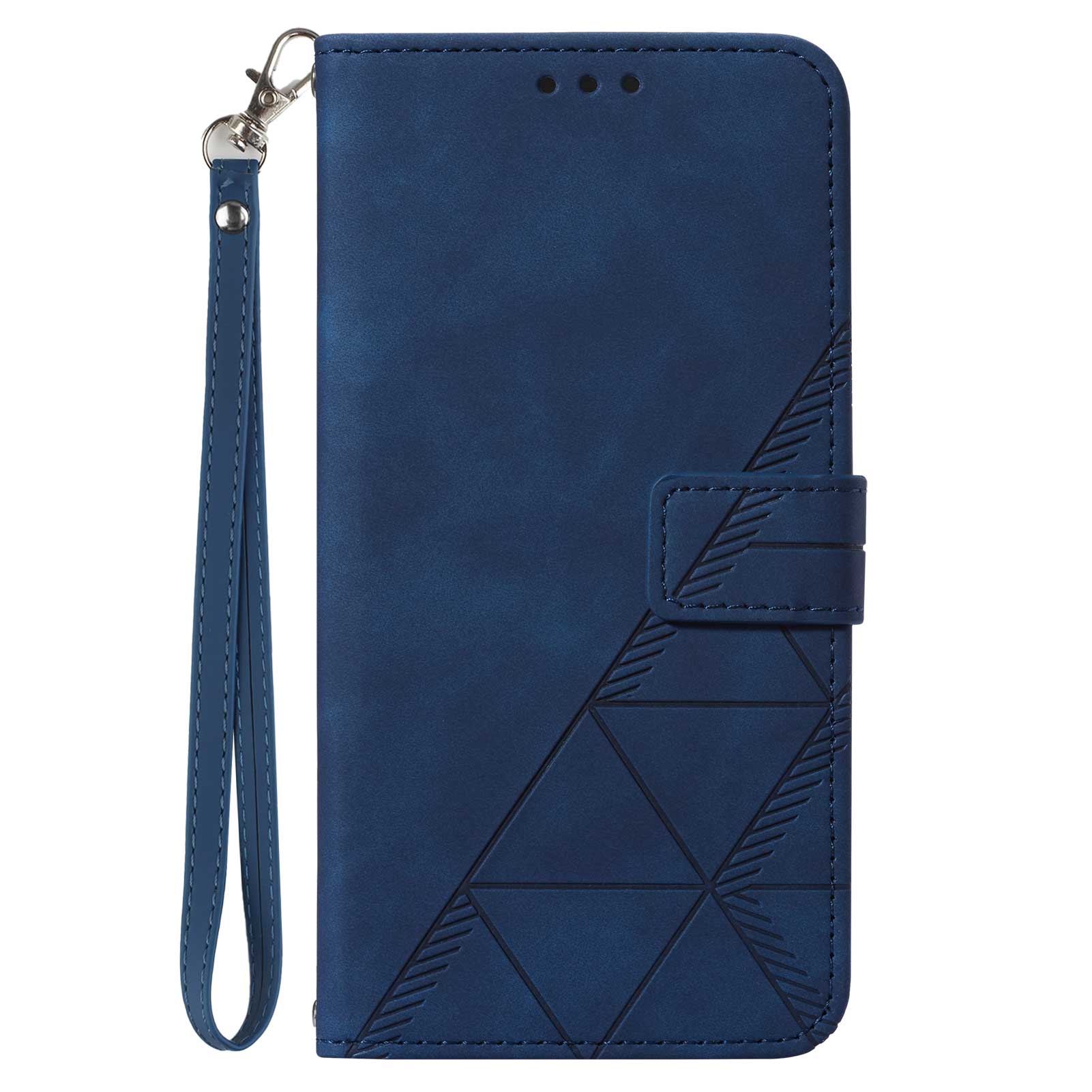 YB Imprinting Series-1 for iPhone 15 Pro Wallet Stand Leather Phone Cover Imprinted Phone Case with Hand Strap - Sapphire