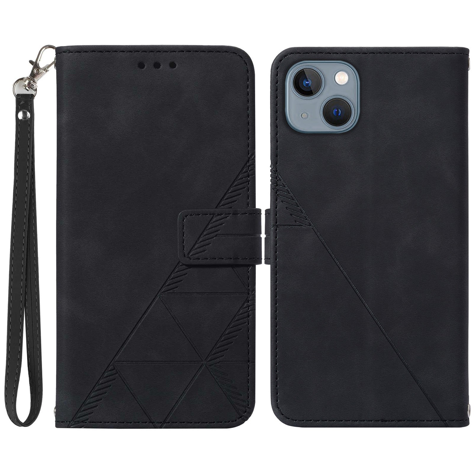 YB Imprinting Series-1 for iPhone 15 PU Leather Phone Case Imprinted Wallet Stand Cover with Hand Strap - Black
