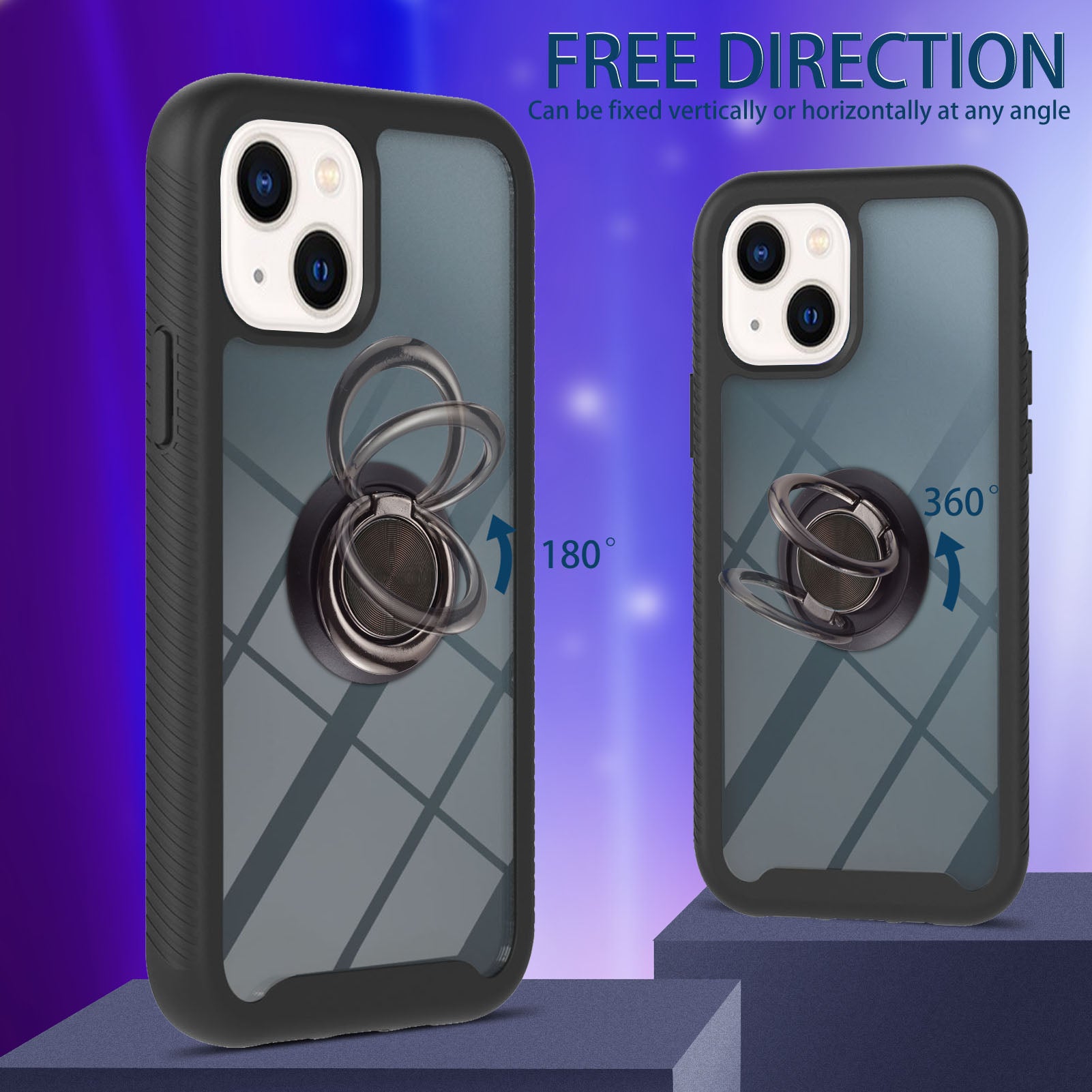 YB PC Series-5 for iPhone 15 Protective Case PC+TPU Ring Kickstand Phone Cover - Black