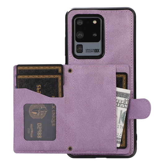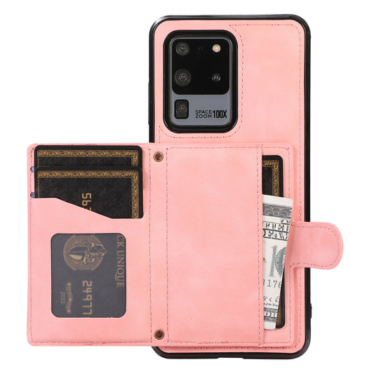 Phone Case for Samsung Galaxy S20 Ultra Card Holder TPU+PU Leather Kickstand Phone Cover - Rose Gold