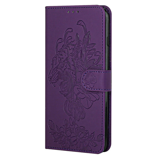 Leather Wallet Stand Case with Tiger Head Pattern Imprinting for Samsung Galaxy S20 Plus 4G/5G - Red