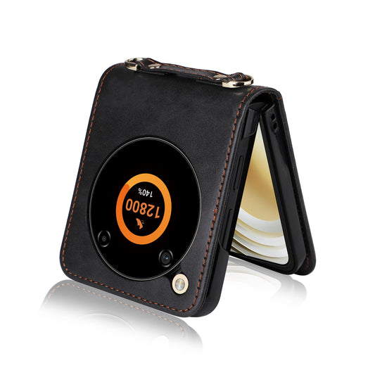 For ZTE nubia Flip 5G / Libero Flip A304ZT Case Card Holder Leather Phone Cover with Lanyard - Black