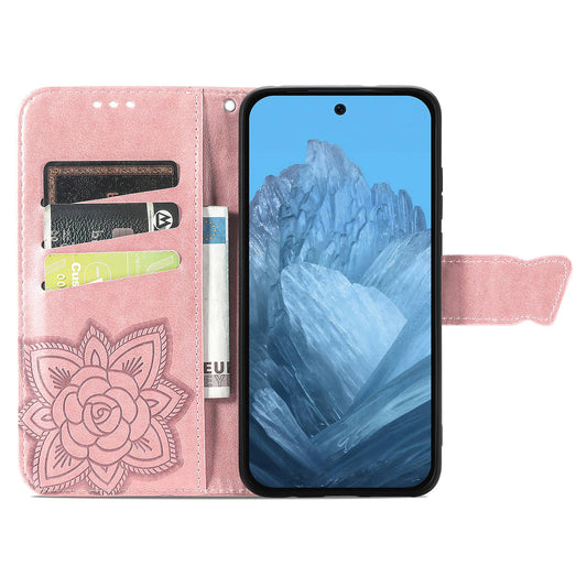For Google Pixel 9 Case Card Holder 3D Pattern PU Leather Protective Phone Cover - Diamond Butterfly