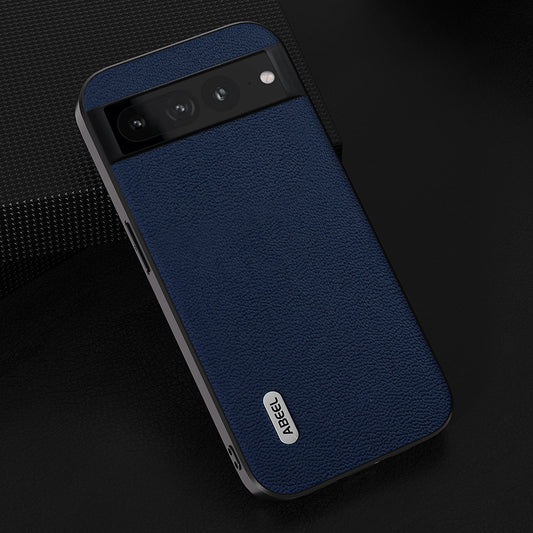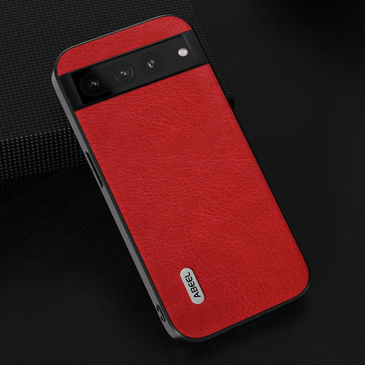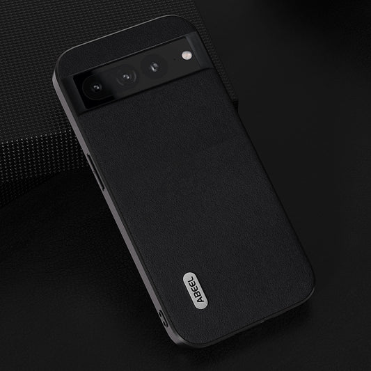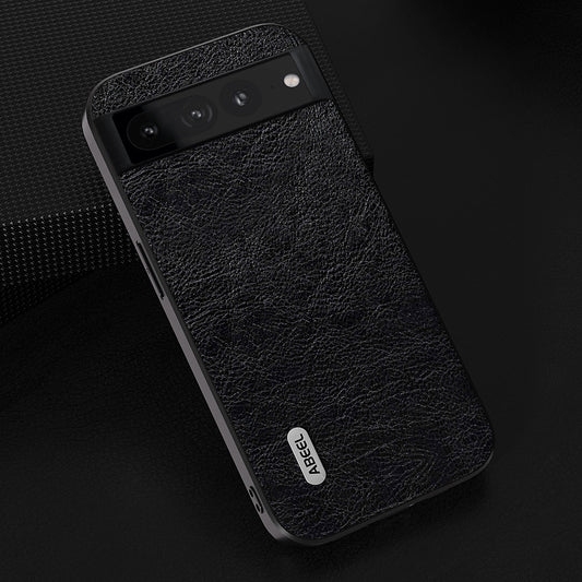 Uniqkart for Google Pixel 8 Genuine Cow Leather+PC+TPU Back Cover Litchi Texture Mobile Case - Black