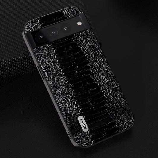Uniqkart for Google Pixel 8 Ostrich Texture Phone Case Genuine Cow Leather+PC+TPU Back Cover - Black