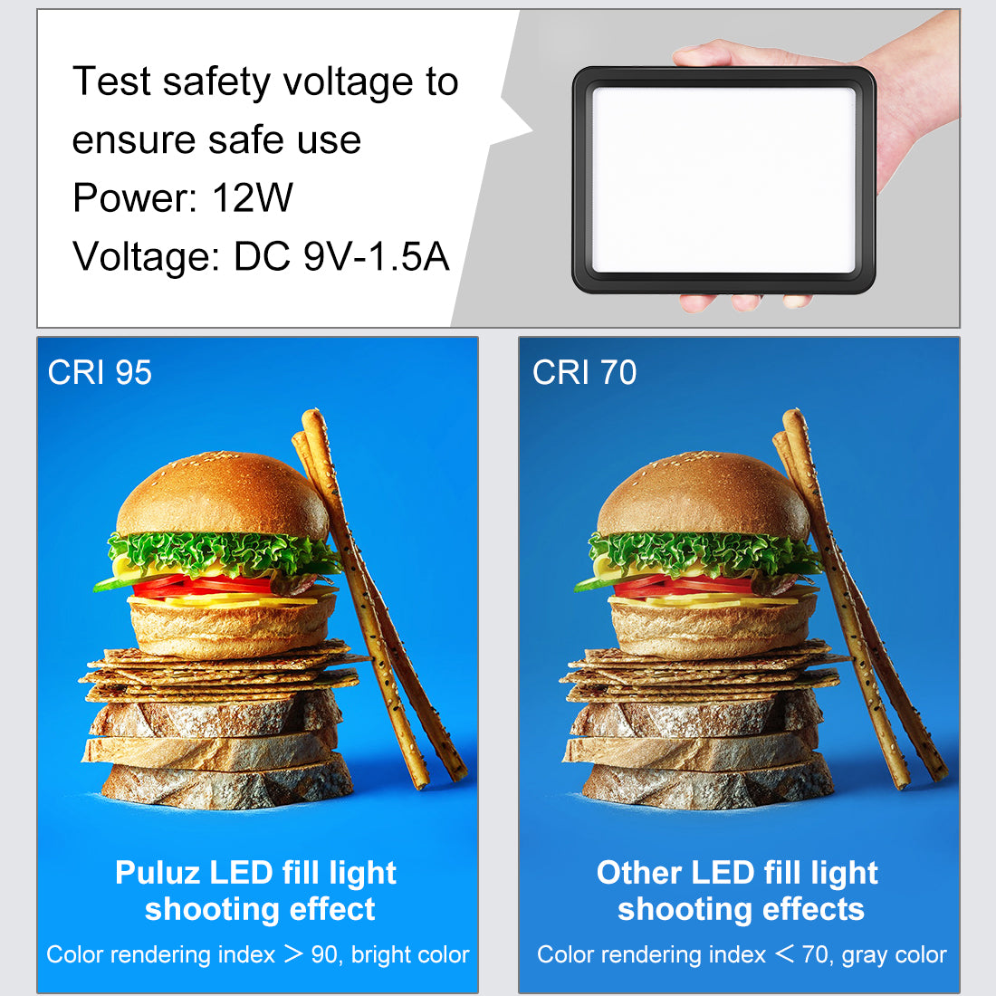 Compact size LED light panel with 116pcs LED beads, 12W max. power output, soft and even illumination, helps you to take more natural and more vivid photos