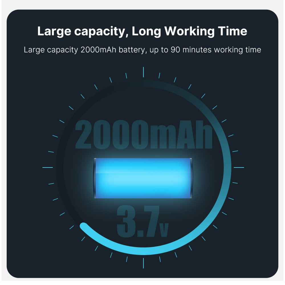 - Long Battery Working Time: Built-in 3.7V 2000mAh large capacity lithium battery, supports up to 90min long working time, and the battery can be recharged by Type-C charging port and USB charging cable is included, quick and easy charging