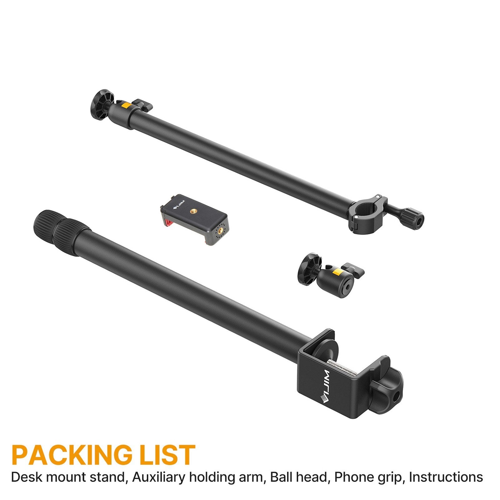 - Easy and Quick to Use: No complicated installation steps, just fix the clamp mount on desk, and then adjust the needed height and install the holding arm, finally adjust the angle of ball head, quick and convenient to use