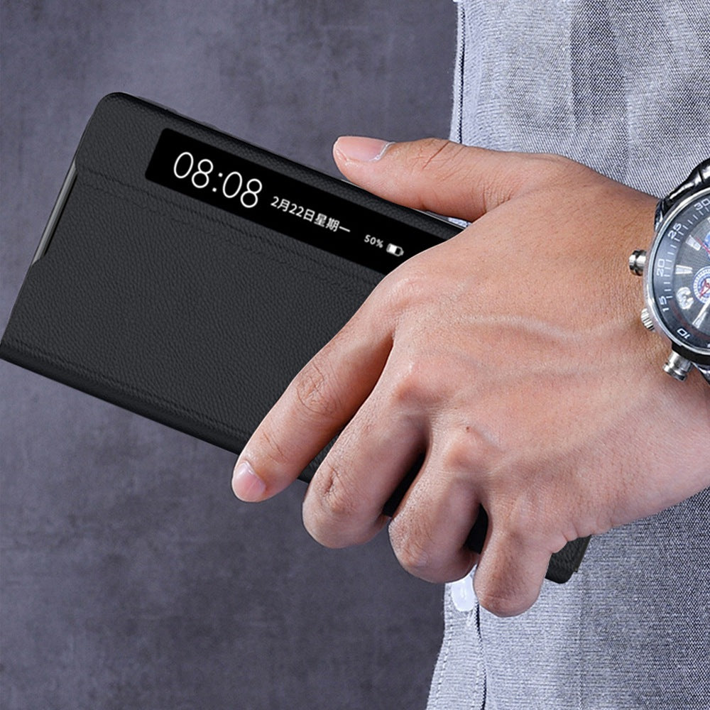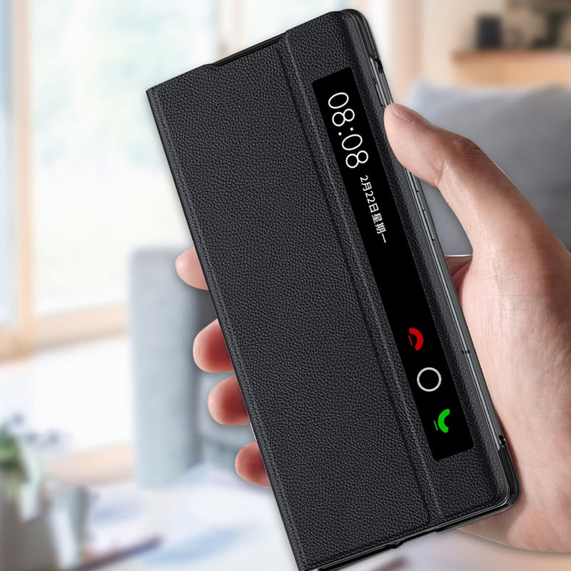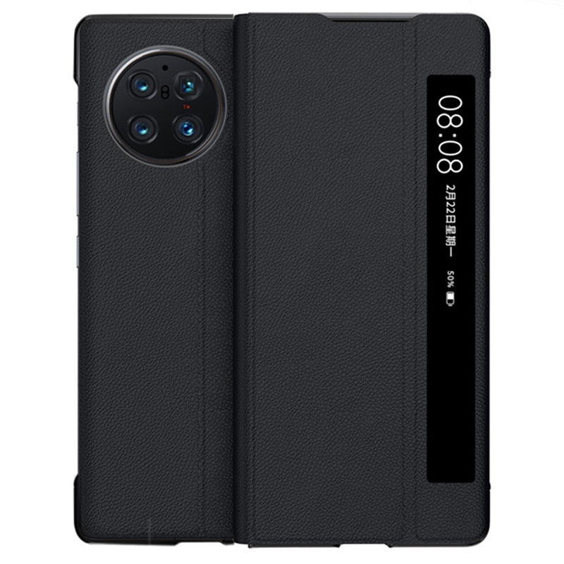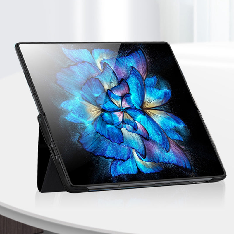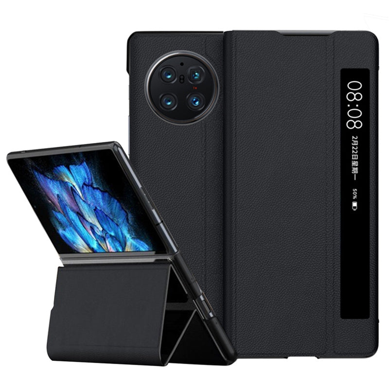 For vivo X Fold Genuine Leather Phone Case Scratch Resistant Anti-fall Cell Phone Cover Stand Protective Shell - Black