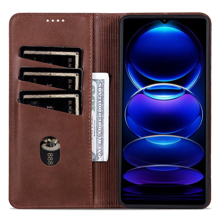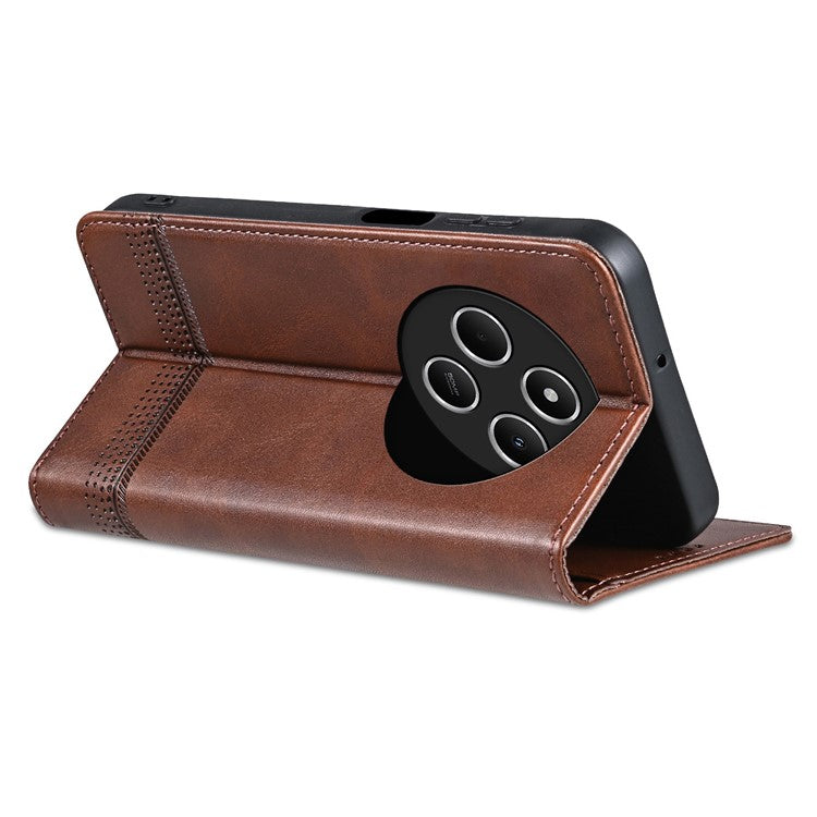 AZNS For Xiaomi Poco C75 4G / Redmi 14R 5G / 14C 4G Case Cowhide Texture PU Leather Wallet Phone Cover - Coffee