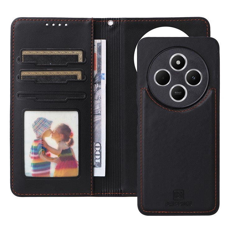 BETOPNICE 005 Leather Phone Case for Xiaomi Redmi A4 5G / Redmi A3 Pro 4G / Poco C75 4G / Redmi 14R 5G / 14C 4G Wallet Stand Cover - Black