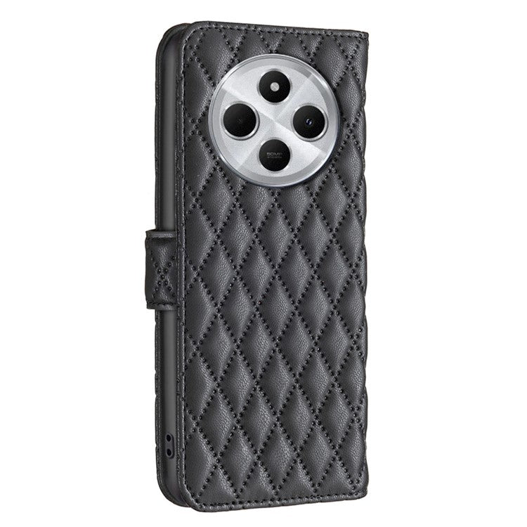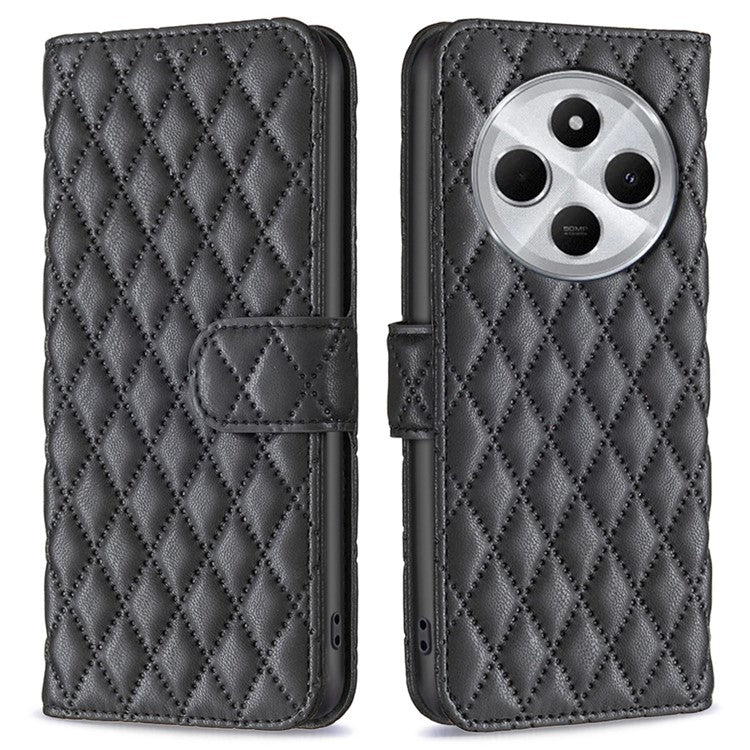 BINFEN COLOR BF Style-14 For Xiaomi Redmi 14C 4G Case Rhombus Phone Leather Cover Stand - Black