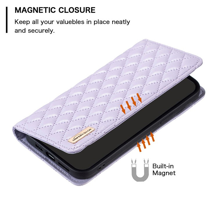 BINFEN COLOR BF Style-16 For Xiaomi Redmi 14C 4G Case Card Slots Rhombus Leather Cover - Purple