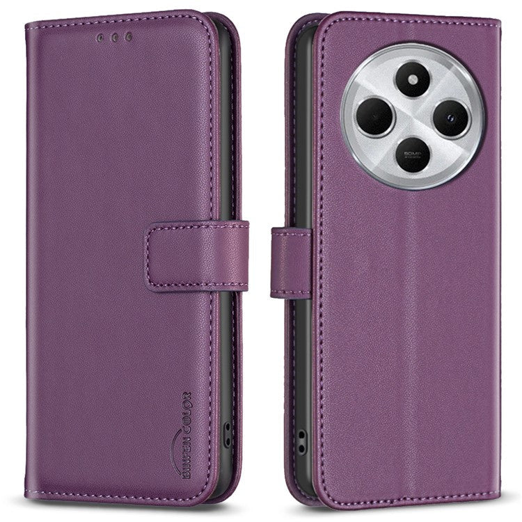BINFEN COLOR BF17 For Xiaomi Redmi 14C 4G Case Wallet Folio Flip Leather Cover - Dark Purple