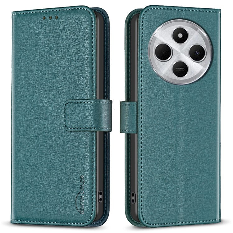BINFEN COLOR BF17 For Xiaomi Redmi 14C 4G Case Wallet Folio Flip Leather Cover - Green