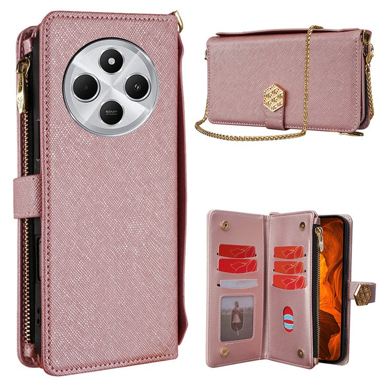 Case For Xiaomi Redmi 14C 4G / 14R 5G / Poco C75 4G Cross Texture PU Leather+TPU Wallet Phone Cover with Strap - Rose Gold