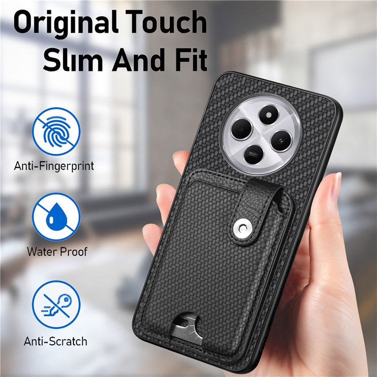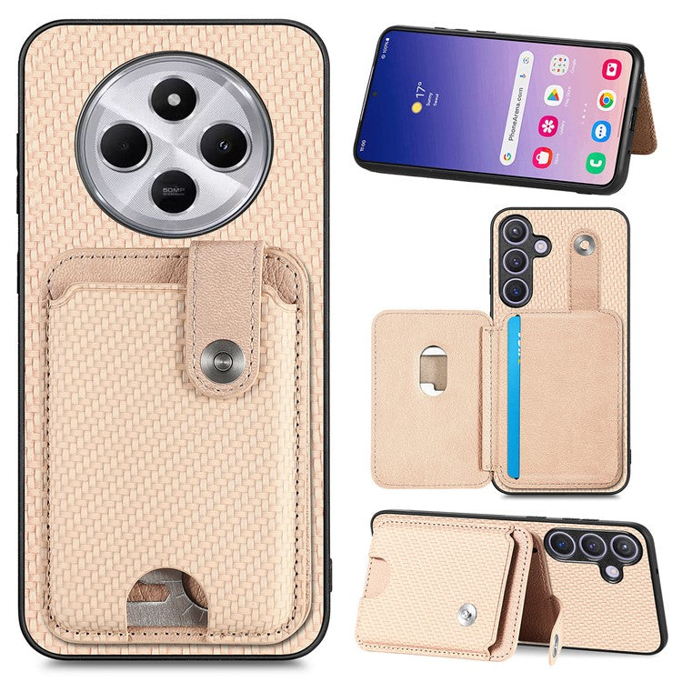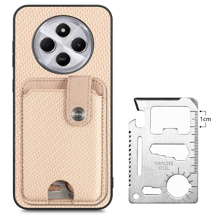 Case with Card Holder For Xiaomi Redmi 14C 4G / 14R 5G / Poco C75 4G Leather+PC+TPU Phone Cover with Card Knife - Apricot