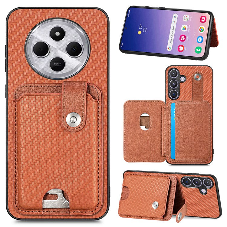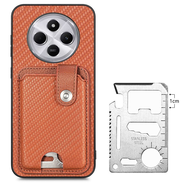 Case with Card Holder For Xiaomi Redmi 14C 4G / 14R 5G / Poco C75 4G Leather+PC+TPU Phone Cover with Card Knife - Brown