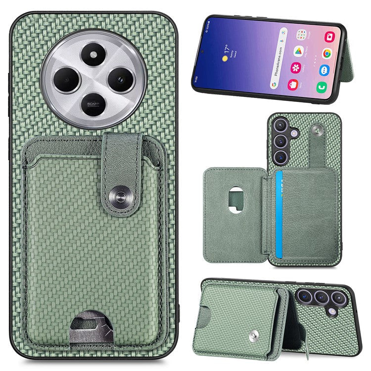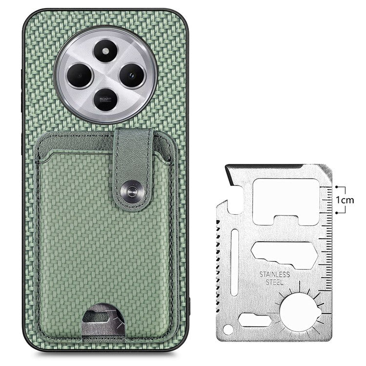 Case with Card Holder For Xiaomi Redmi 14C 4G / 14R 5G / Poco C75 4G Leather+PC+TPU Phone Cover with Card Knife - Green