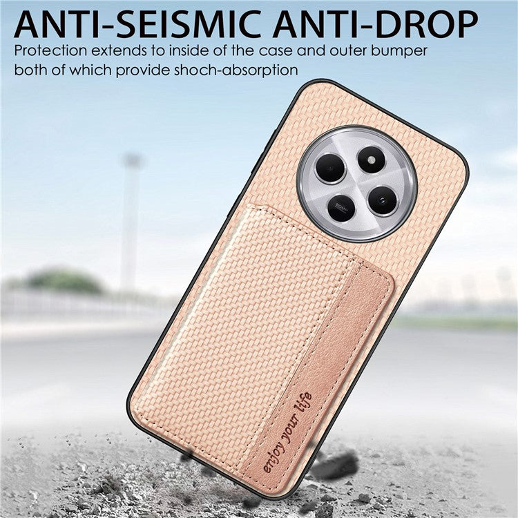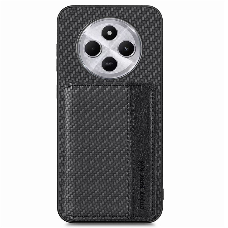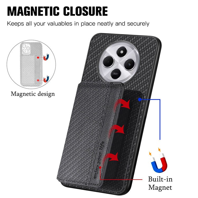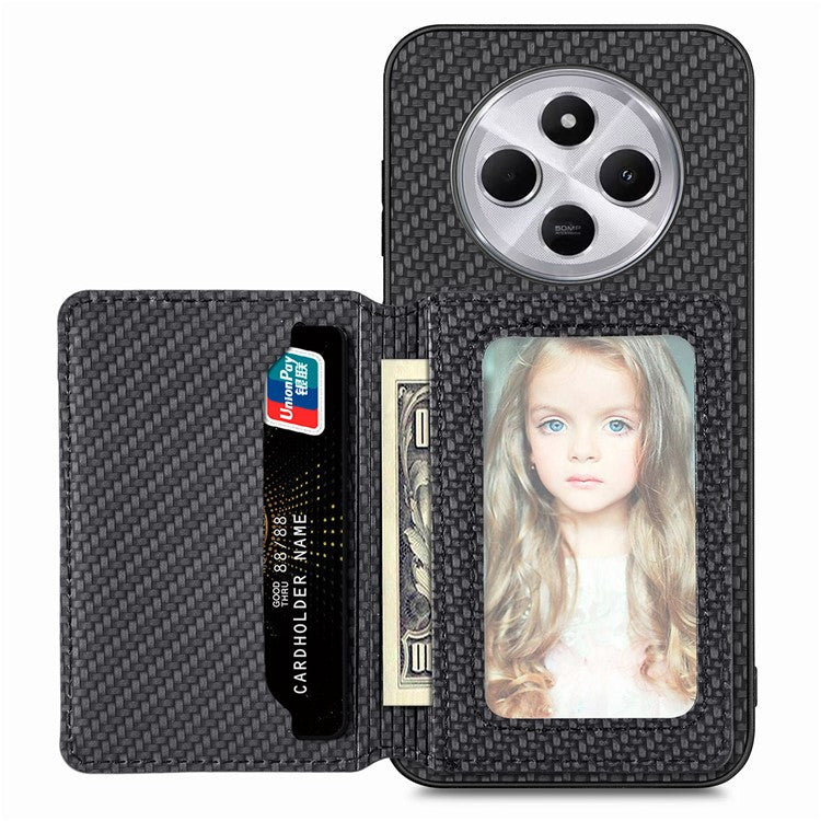 Case with Card Holder For Xiaomi Redmi 14C 4G / 14R 5G / Poco C75 4G RFID Blocking Carbon Fiber Leather+PC+TPU Phone Cover - Black