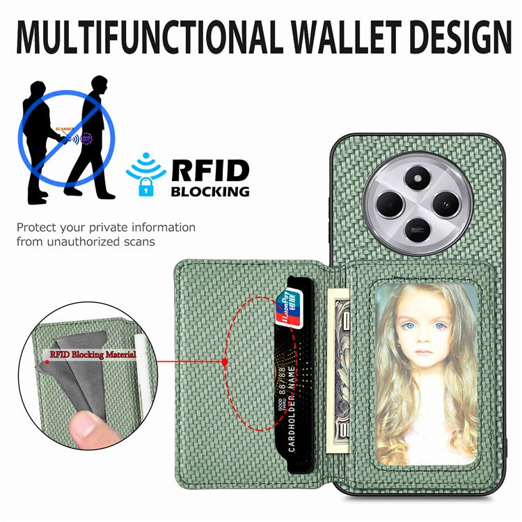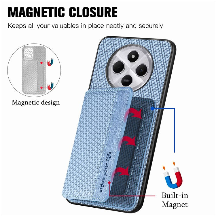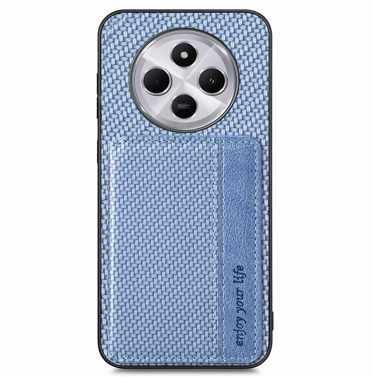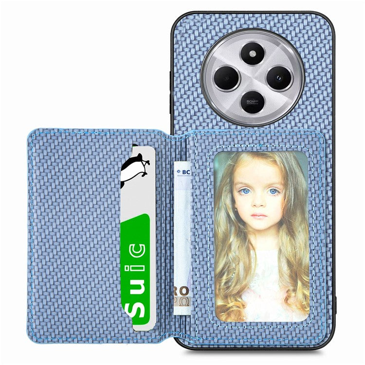 Case with Card Holder For Xiaomi Redmi 14C 4G / 14R 5G / Poco C75 4G RFID Blocking Carbon Fiber Leather+PC+TPU Phone Cover - Blue